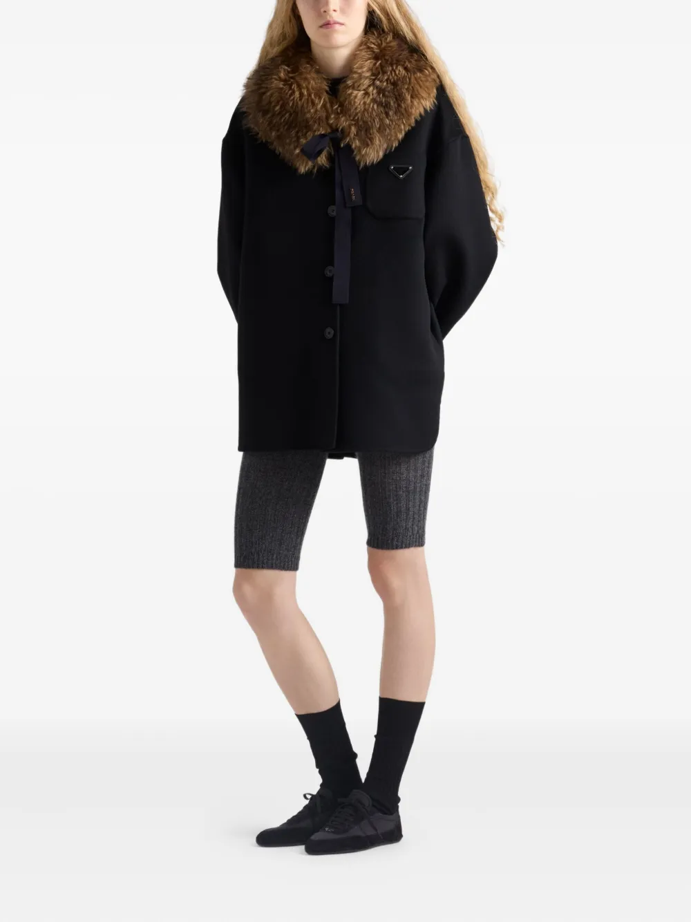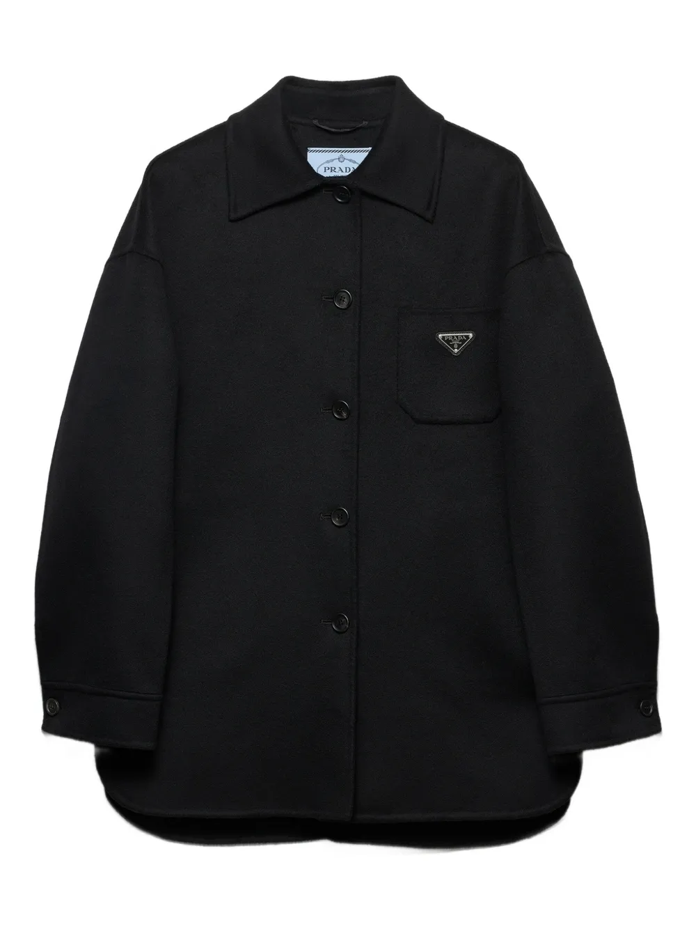 Куртка с треугольным логотипом и пуговицами Prada, черный 466 501₽