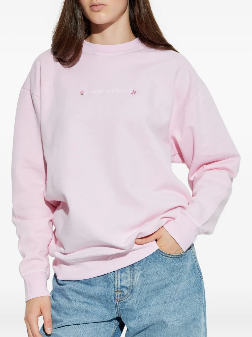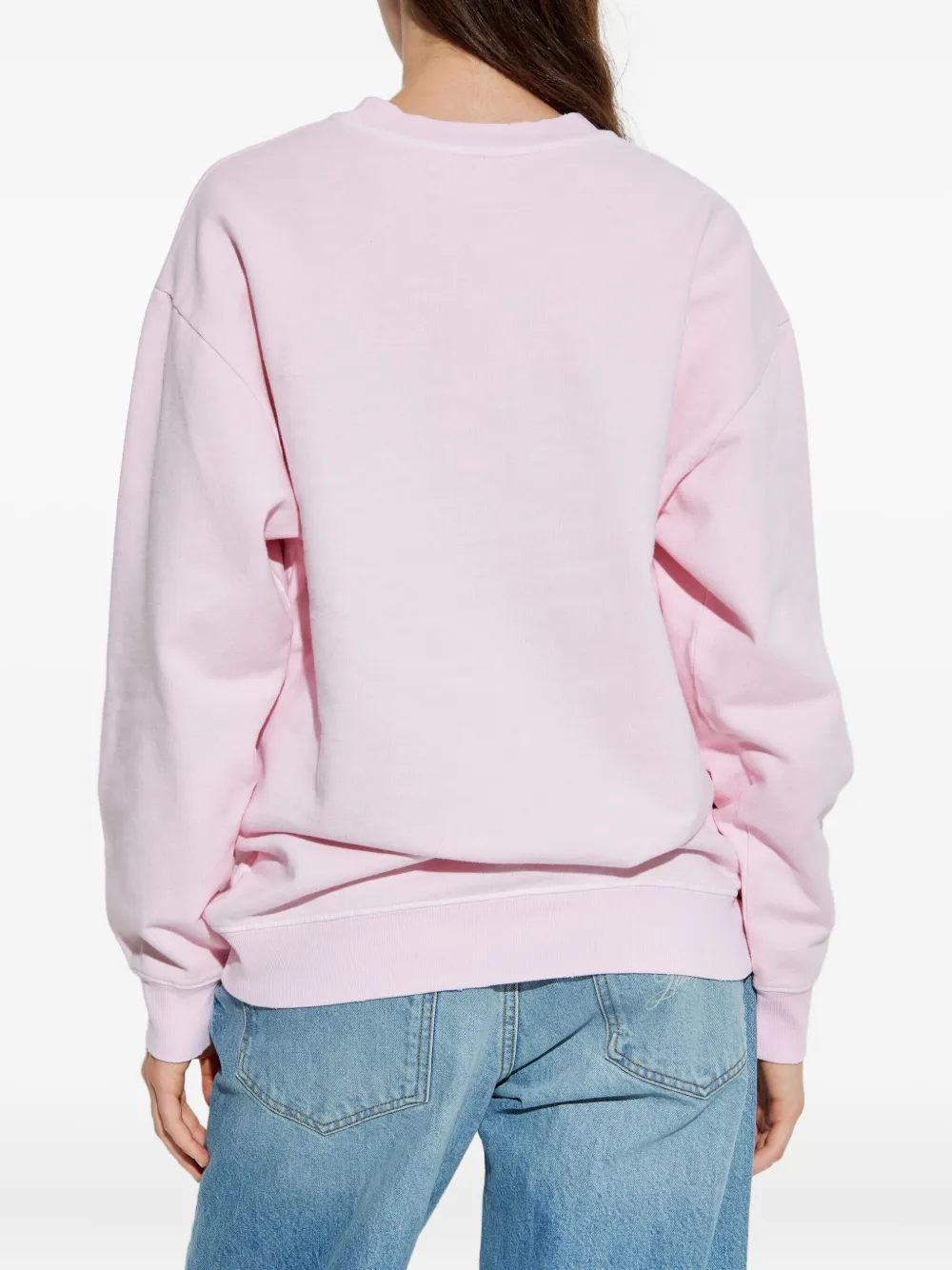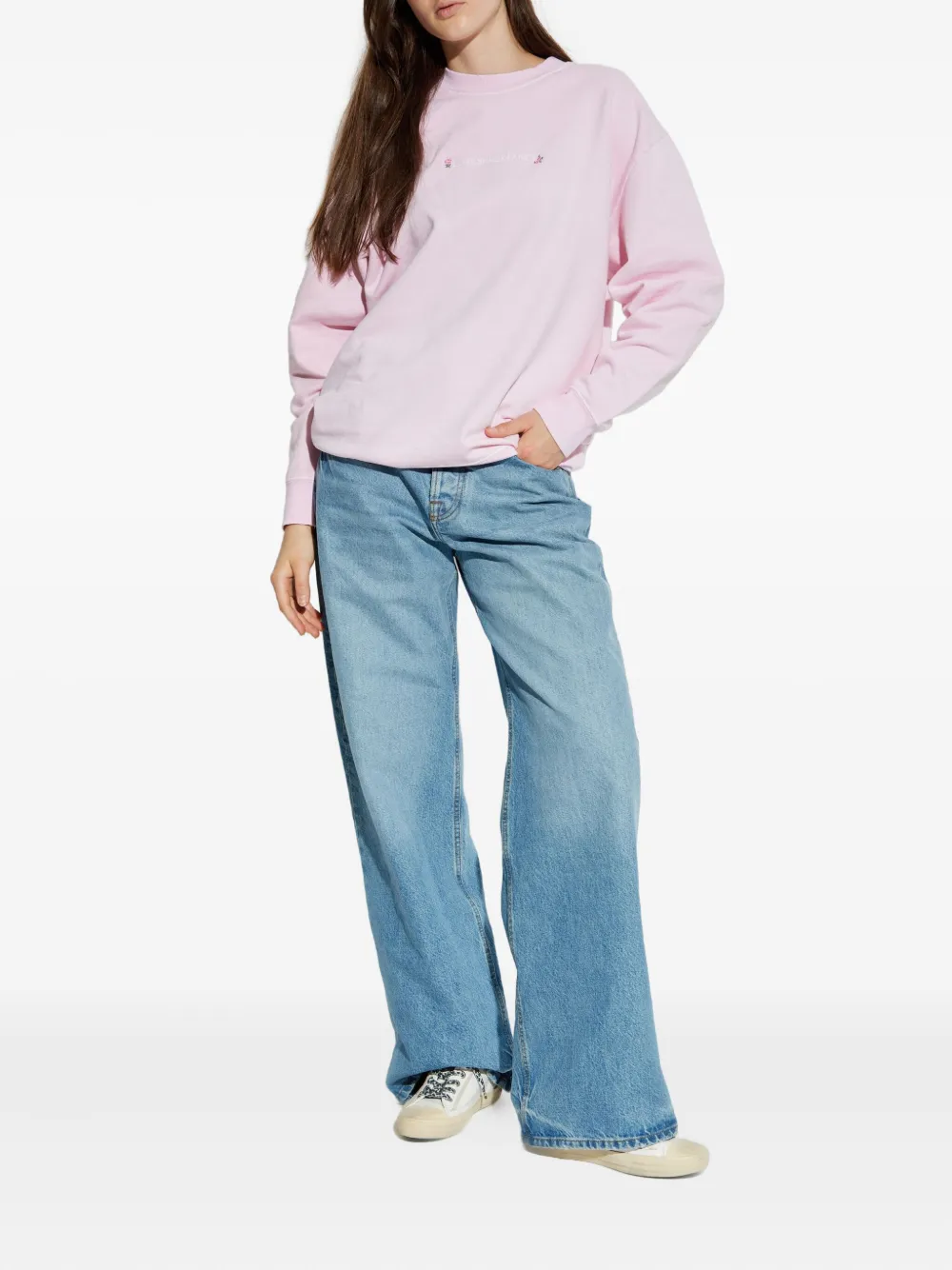 Пудрово-розовый свитер с вышитым логотипом, круглым вырезом, длинными рукавами, трикотажной резинкой по нижнему краю и манжетам