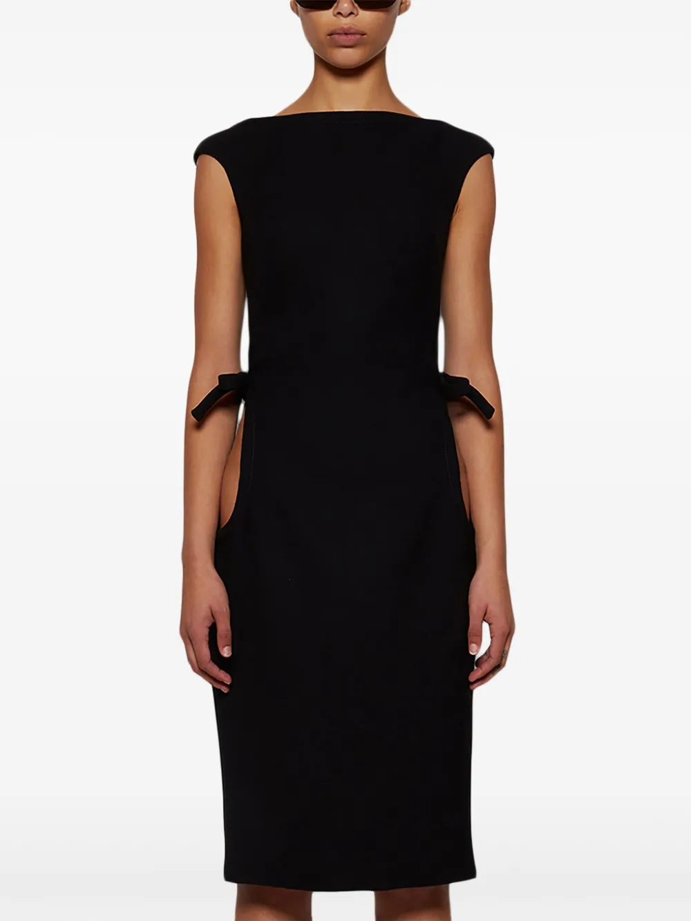 Шерстяное платье миди с вырезом-лодочкой Miu Miu, черный