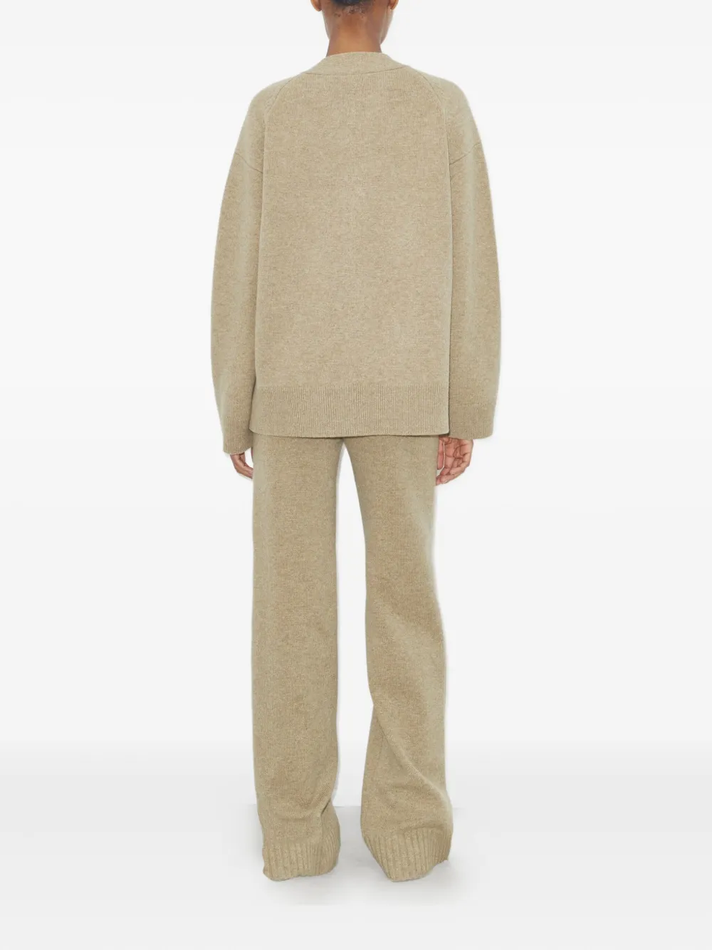 Бежевый вязаный джемпер с интарсией, нашивкой с логотипом, V-образным вырезом, застежкой на пуговицы, длинными рукавами и ребристым низом