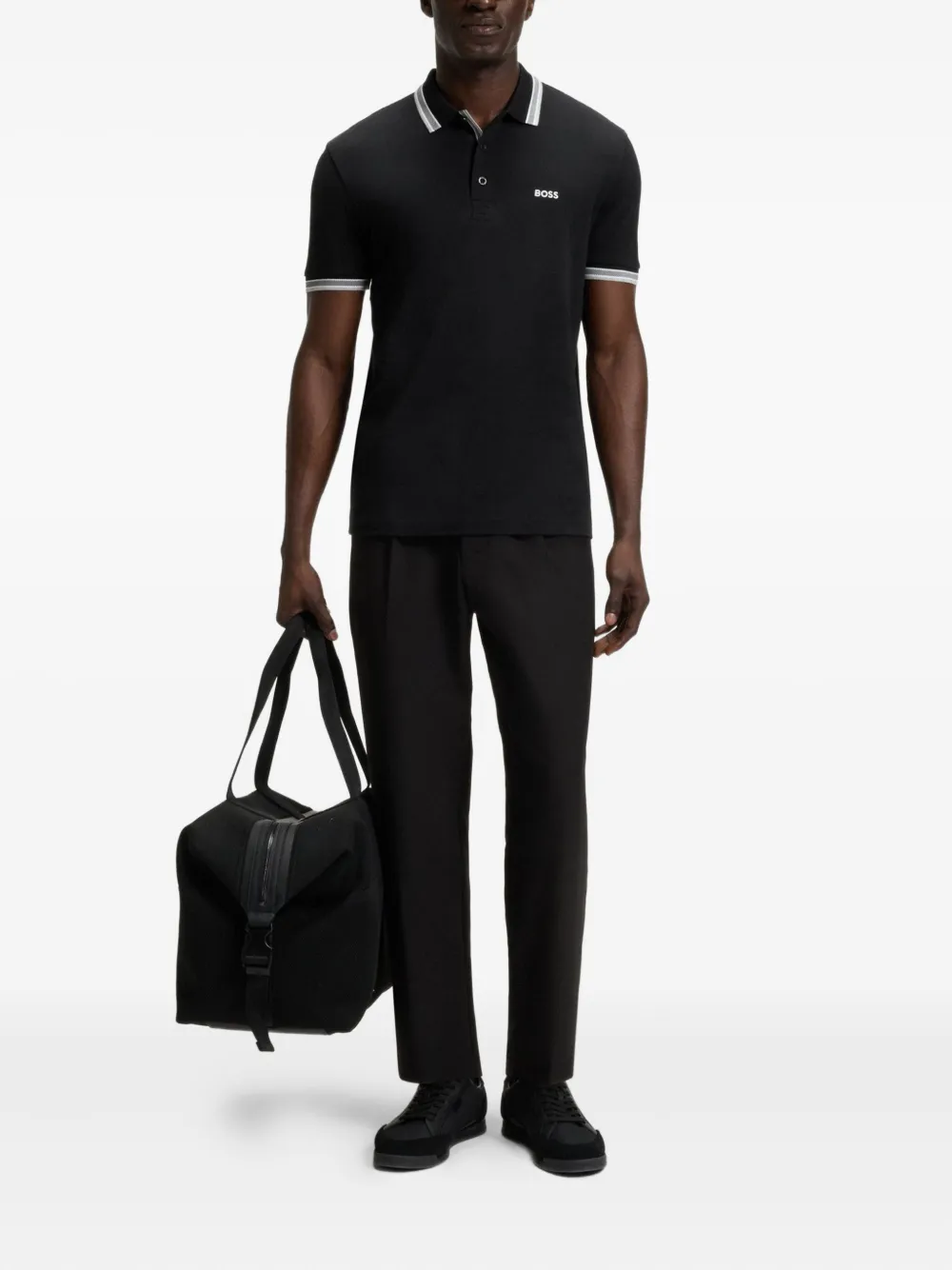 Рубашка поло с полосатым воротником Boss, черный
