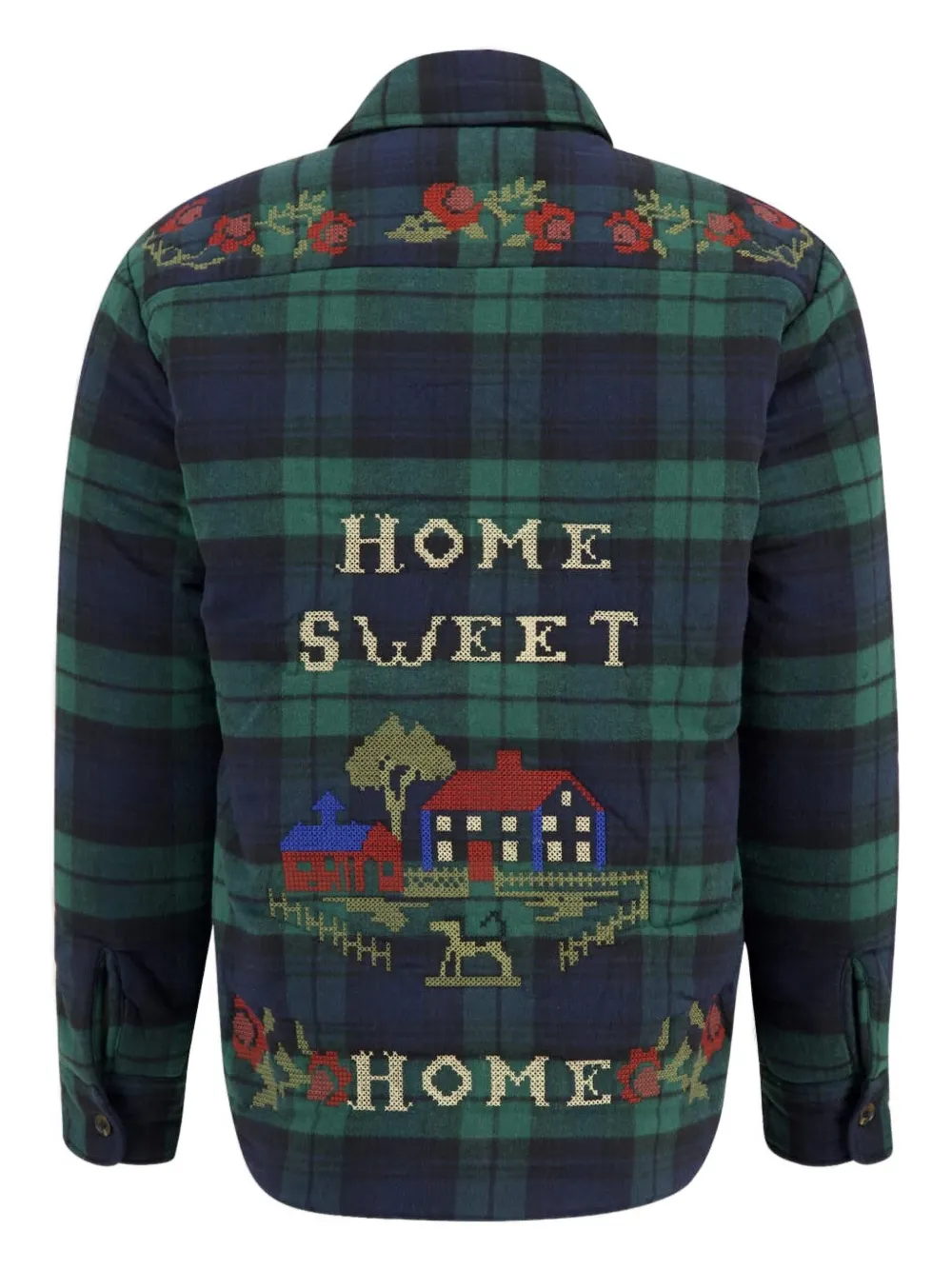 Синий/зеленый тартановый узор, вышитый дизайн, классический воротник, застежка на пуговицы, длинные рукава, манжеты на пуговицах, закругленный подол, хлопок