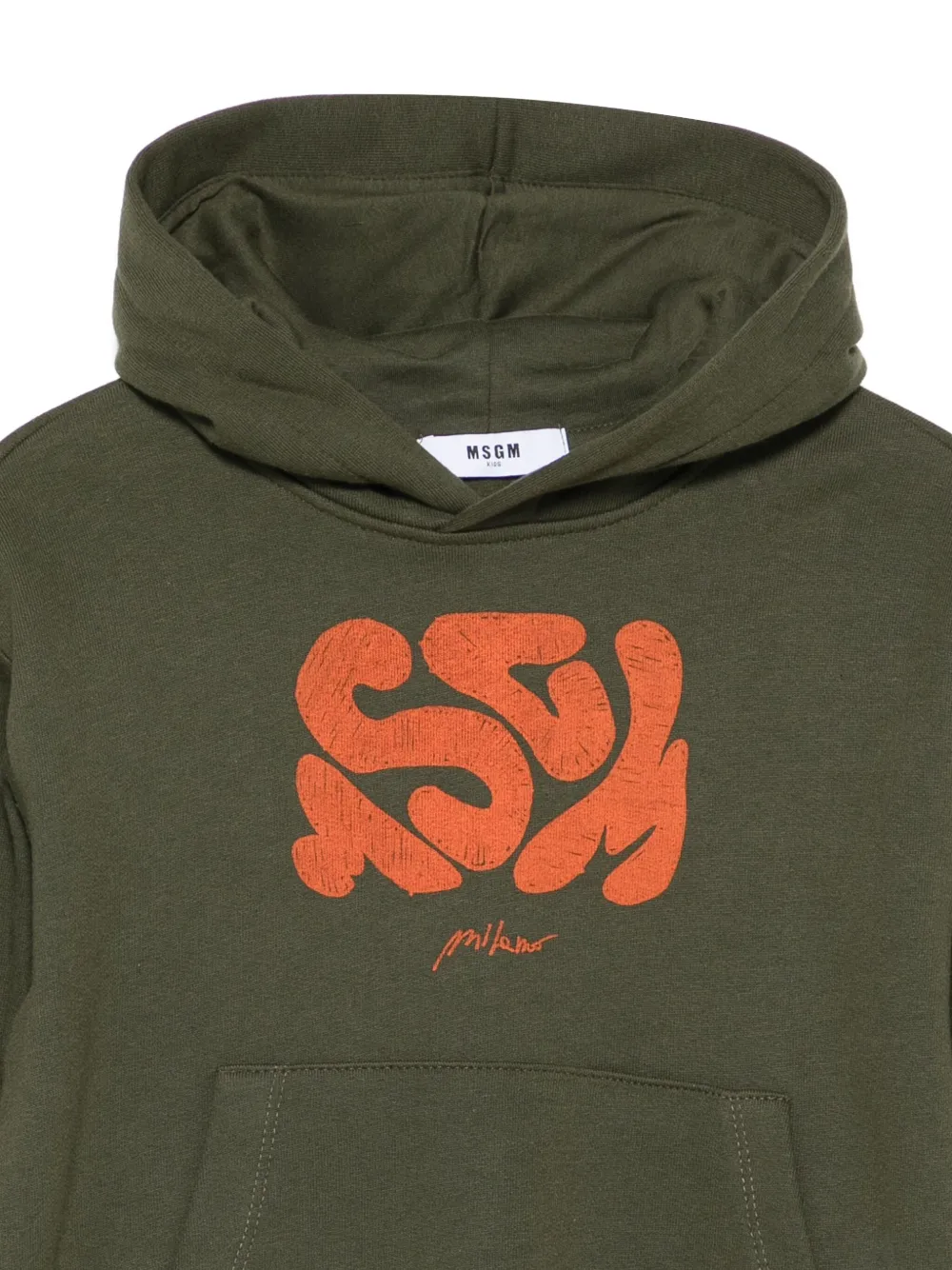 Топ с капюшоном и абстрактным принтом Msgm Kids, зеленый