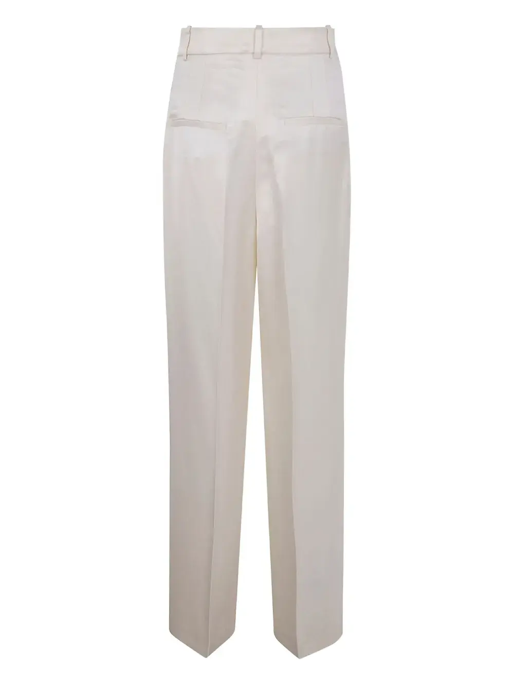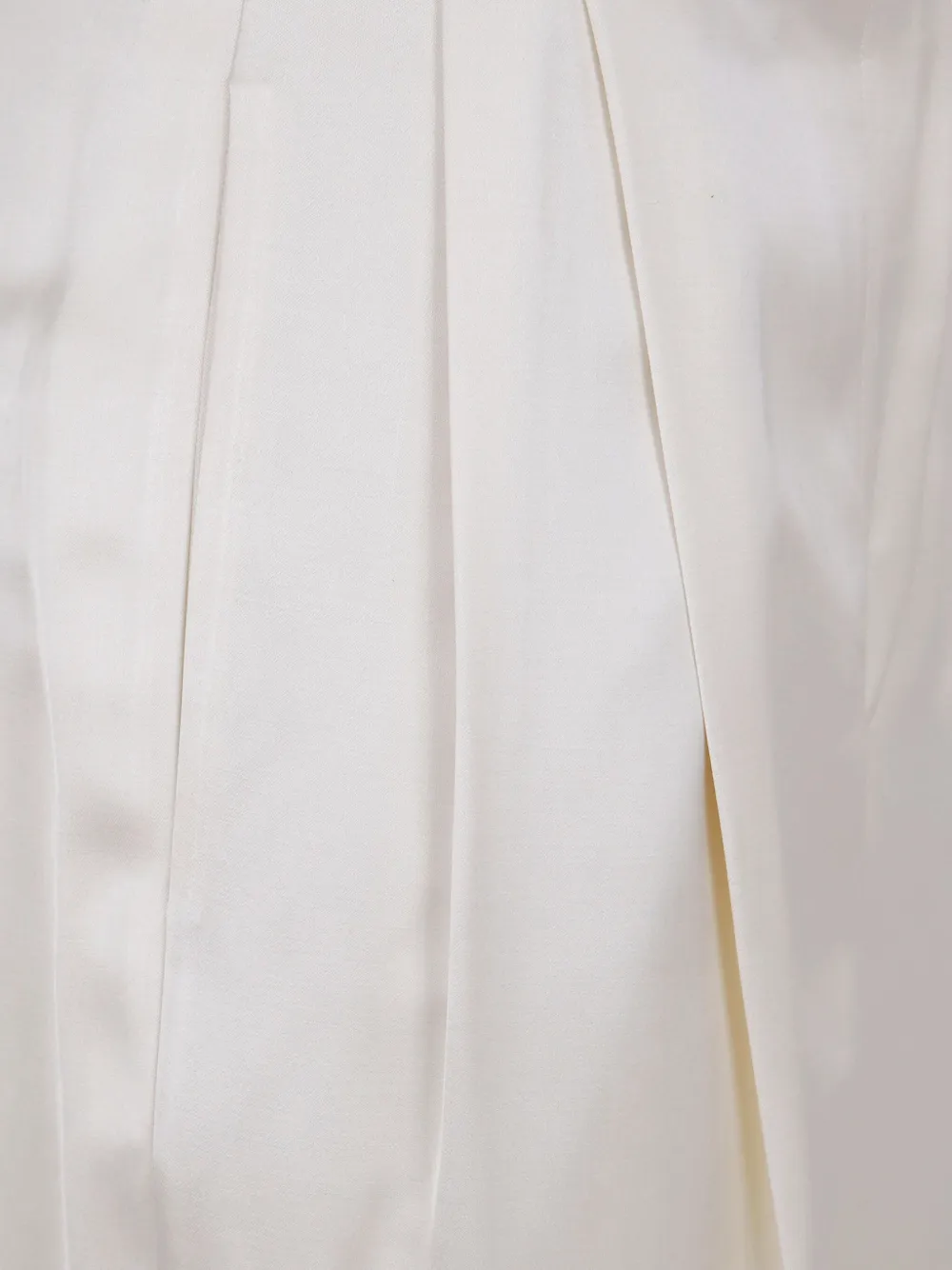 Кремовые плиссировки, шлевки для ремня, задние прорезные карманы, скрытая застежка