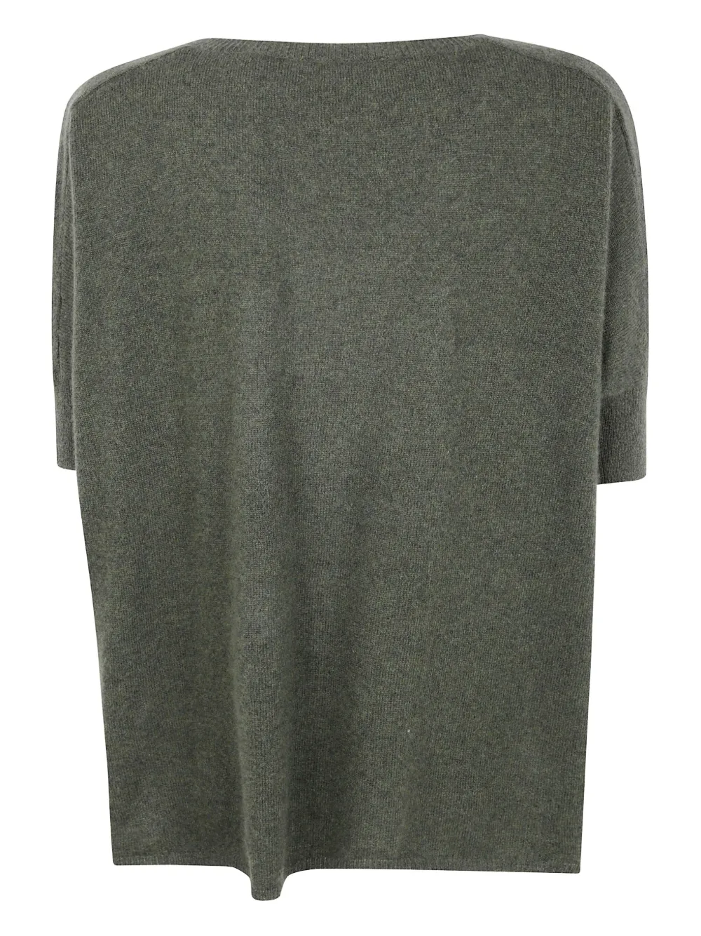 Джемпер из кашемира лесного зеленого цвета с V-образным вырезом и короткими рукавами