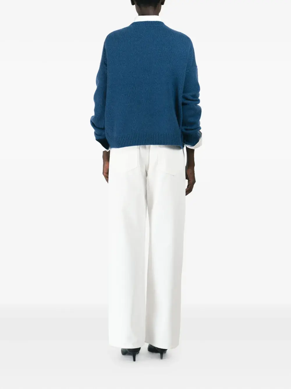 Стираный индиго кашемир, круглый вырез, длинные рукава, рубчатый край, рубчатые манжеты