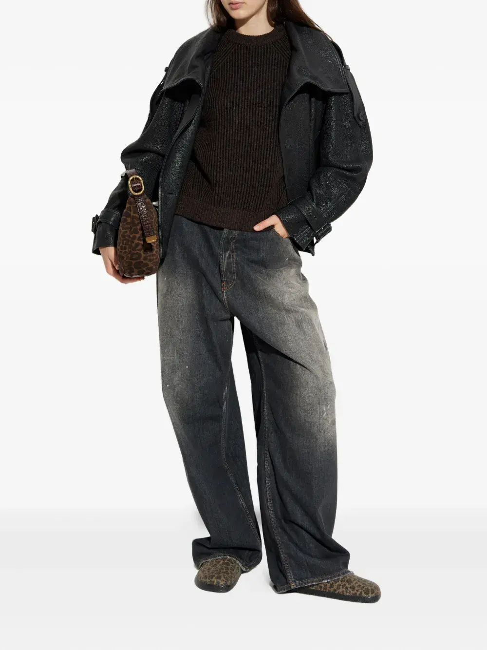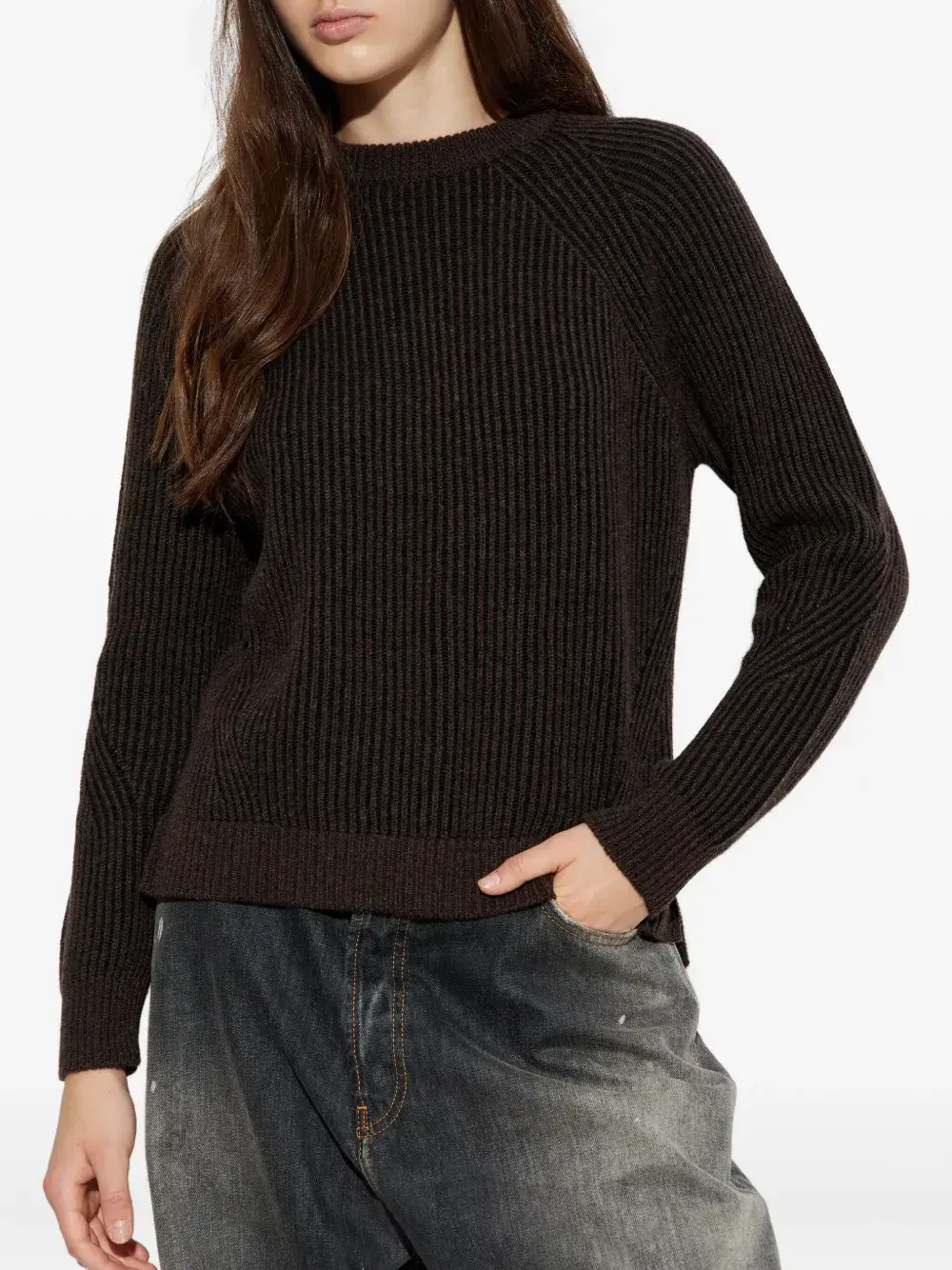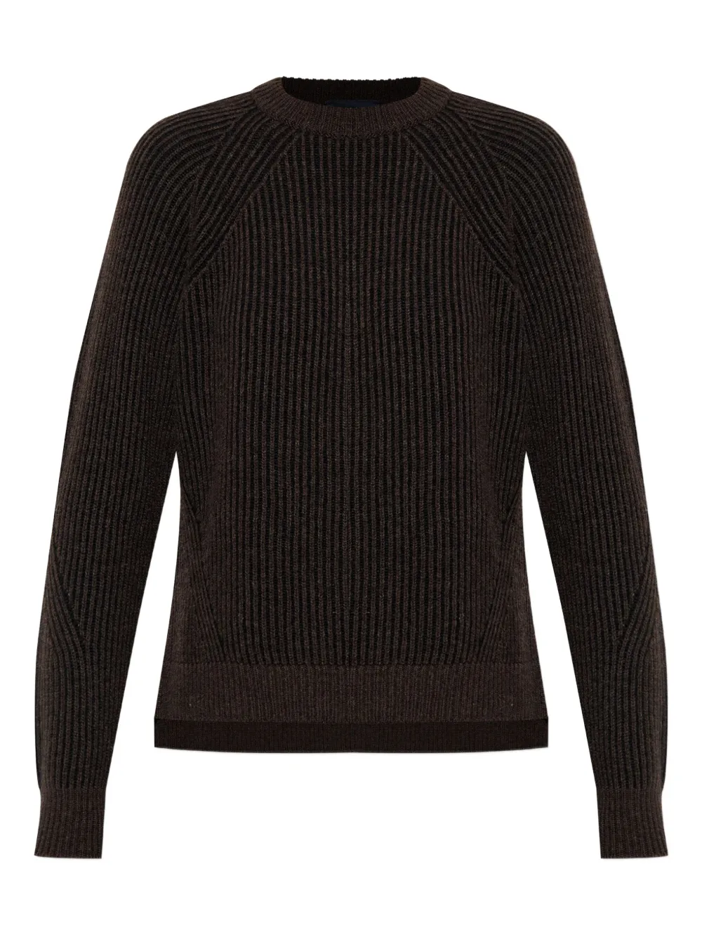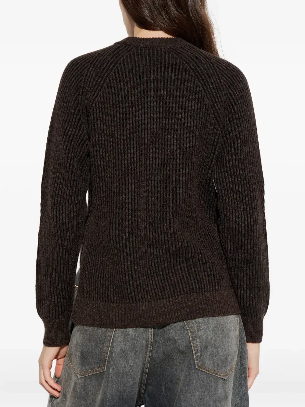 Темно-коричневый вязаный в рубчик круглый вырез длинные рукава ребристый край ребристые манжеты
