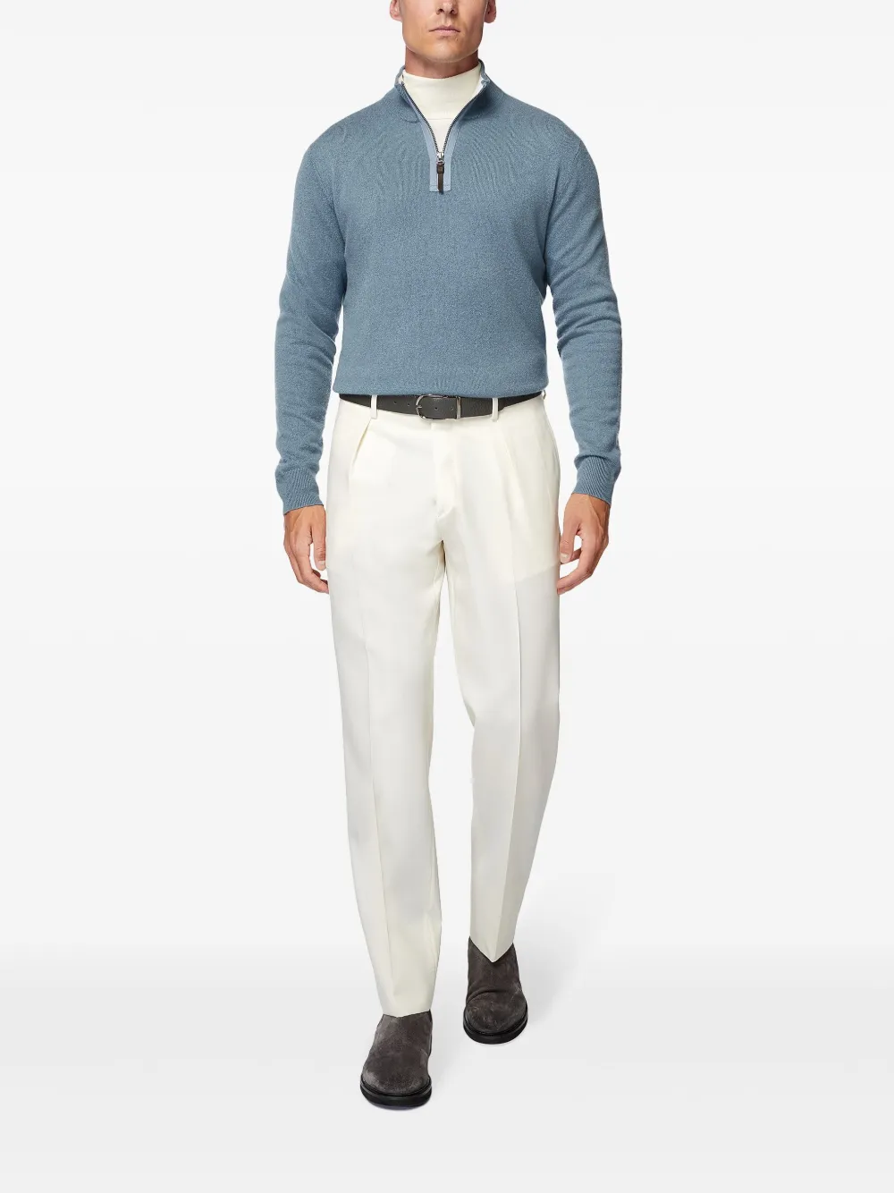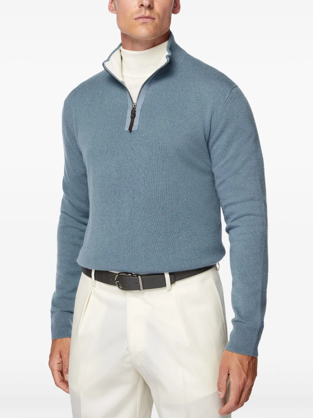 Кашемировый джемпер с воротником на молнии Boggi Milano, синий
