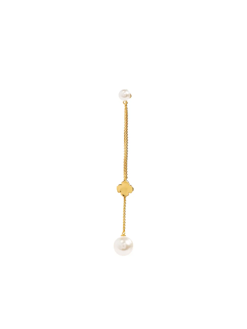 Золотистый оттенок Декор из жемчуга Детали в виде цепочки Дизайн с подвесками Застежка-гвоздик Эти серьги продаются в паре. Обычное ежедневное использование и внешние факторы могут уменьшать блеск драгоценных камней и золотых поверхностей. Для ухода используйте специальные неабразивные средства, предназначенные для чистки ювелирных изделий. Жемчуг следует надевать последним утром и снимать первым вечером. Избегайте контакта с духами или кремами, очищайте с помощью мягкой ткани.