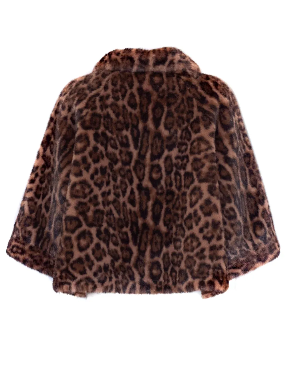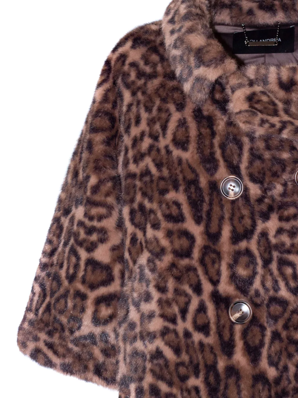 Коричневый леопардовый принт, двубортная застежка, классический воротник