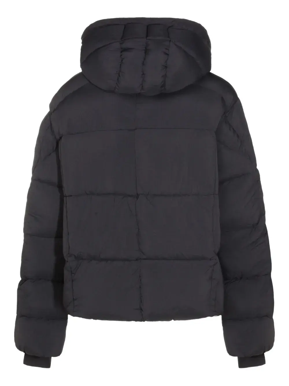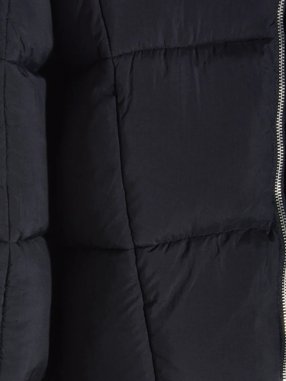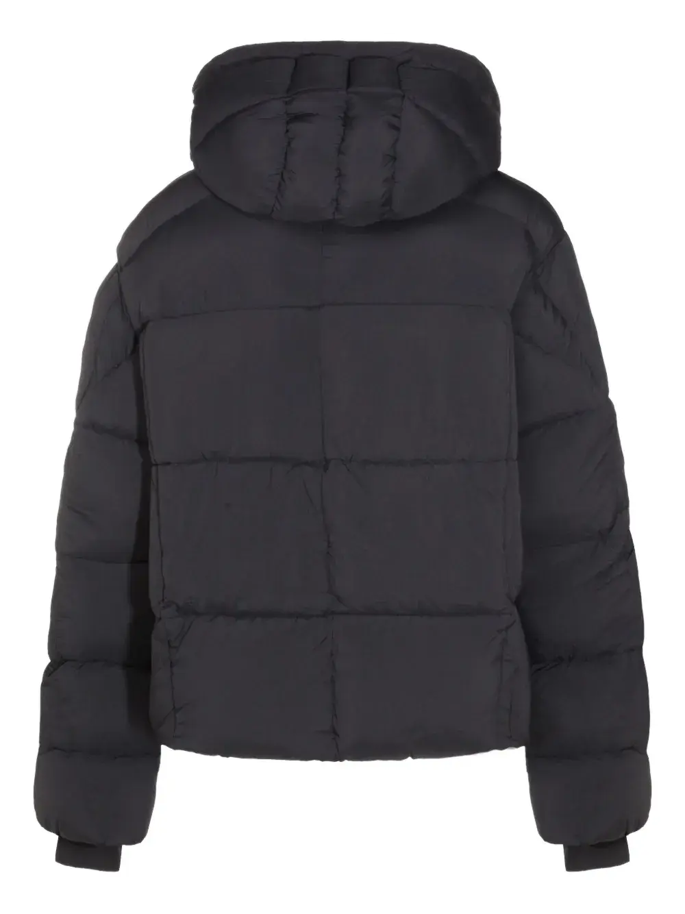 Черная стеганая модель, застежка-молния, капюшон, длинные рукава, ребристые манжеты