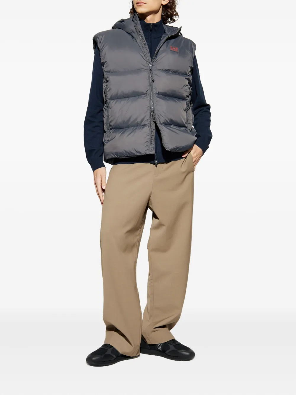 Жилет с капюшоном на молнии Ea7 Emporio Armani, серый