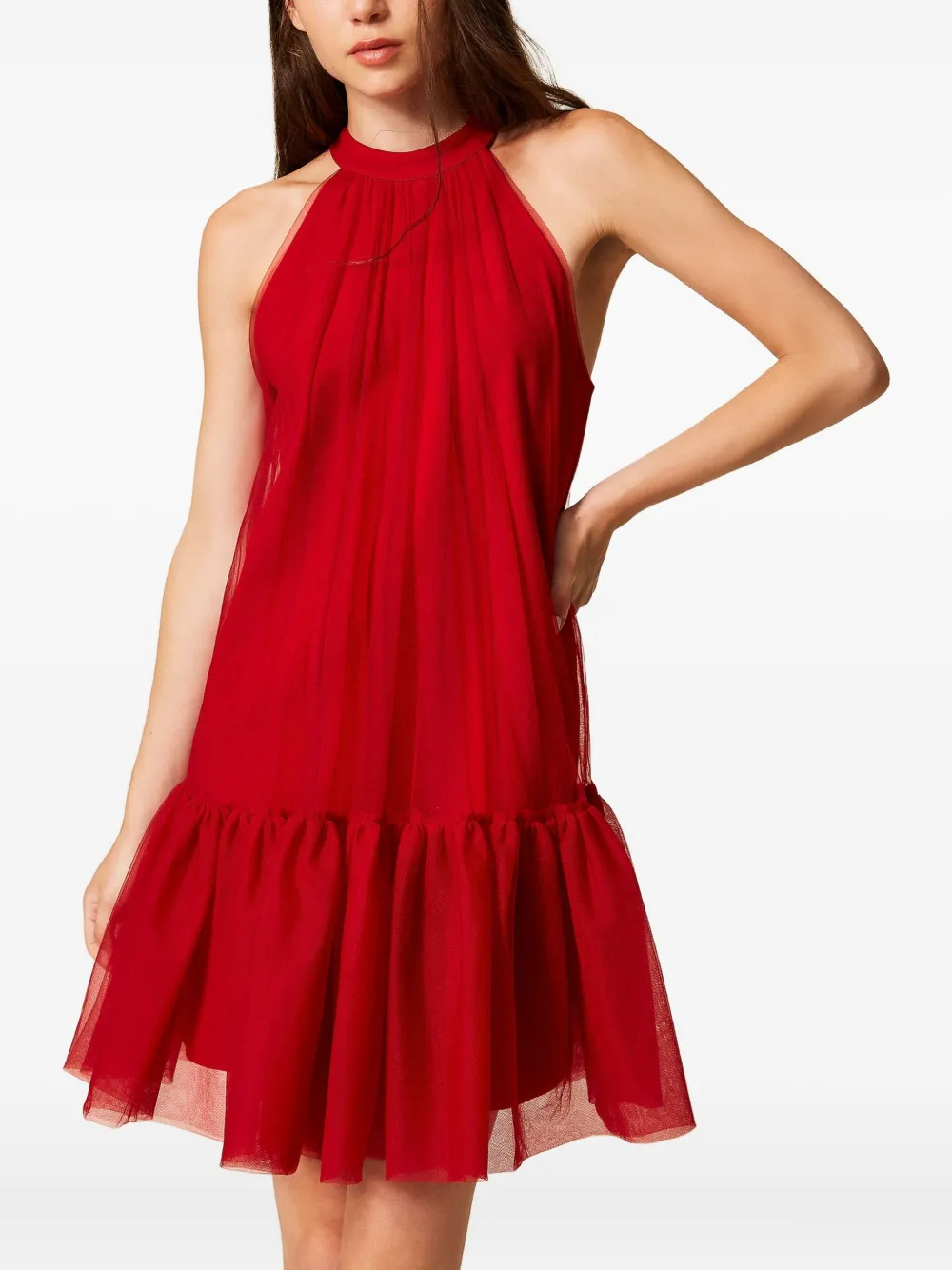 Платье мини с вырезом халтер и оборками Twinset, красный