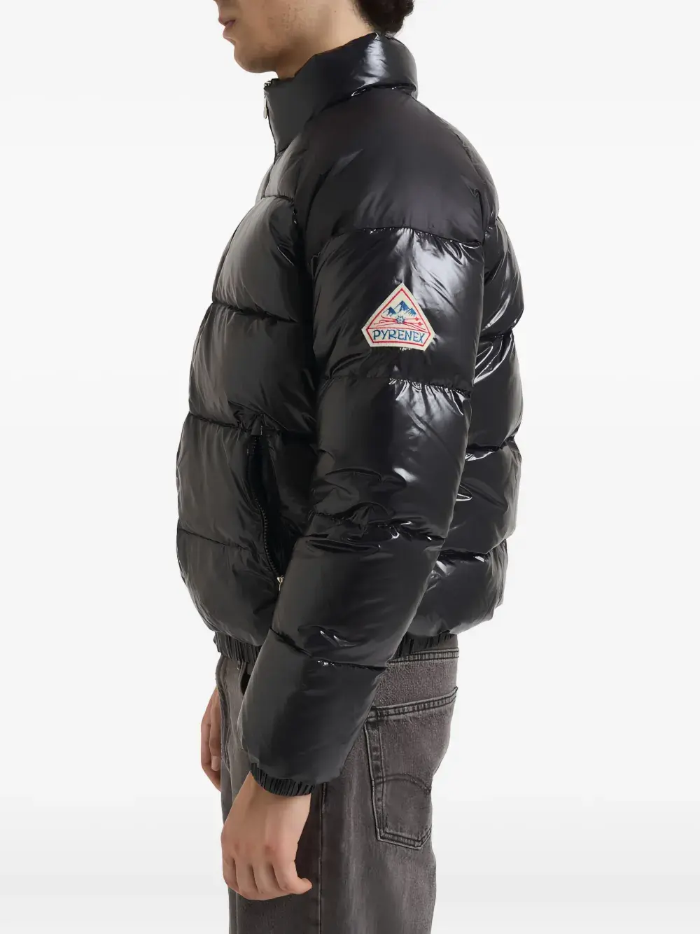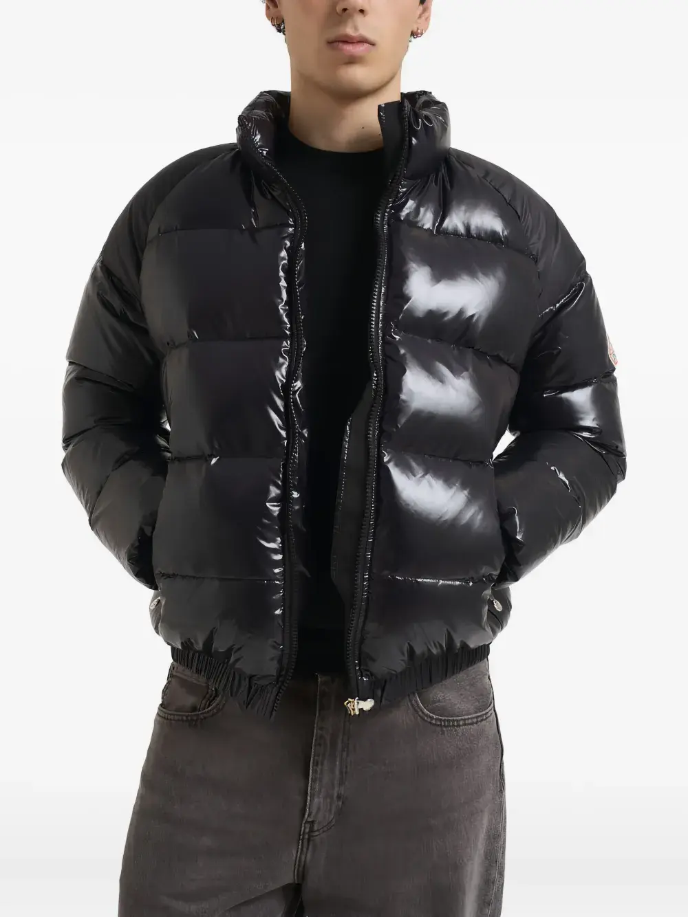 Черный пухлый дизайн, застежка-молния, высокий воротник, нашивка с логотипом, эластичный низ