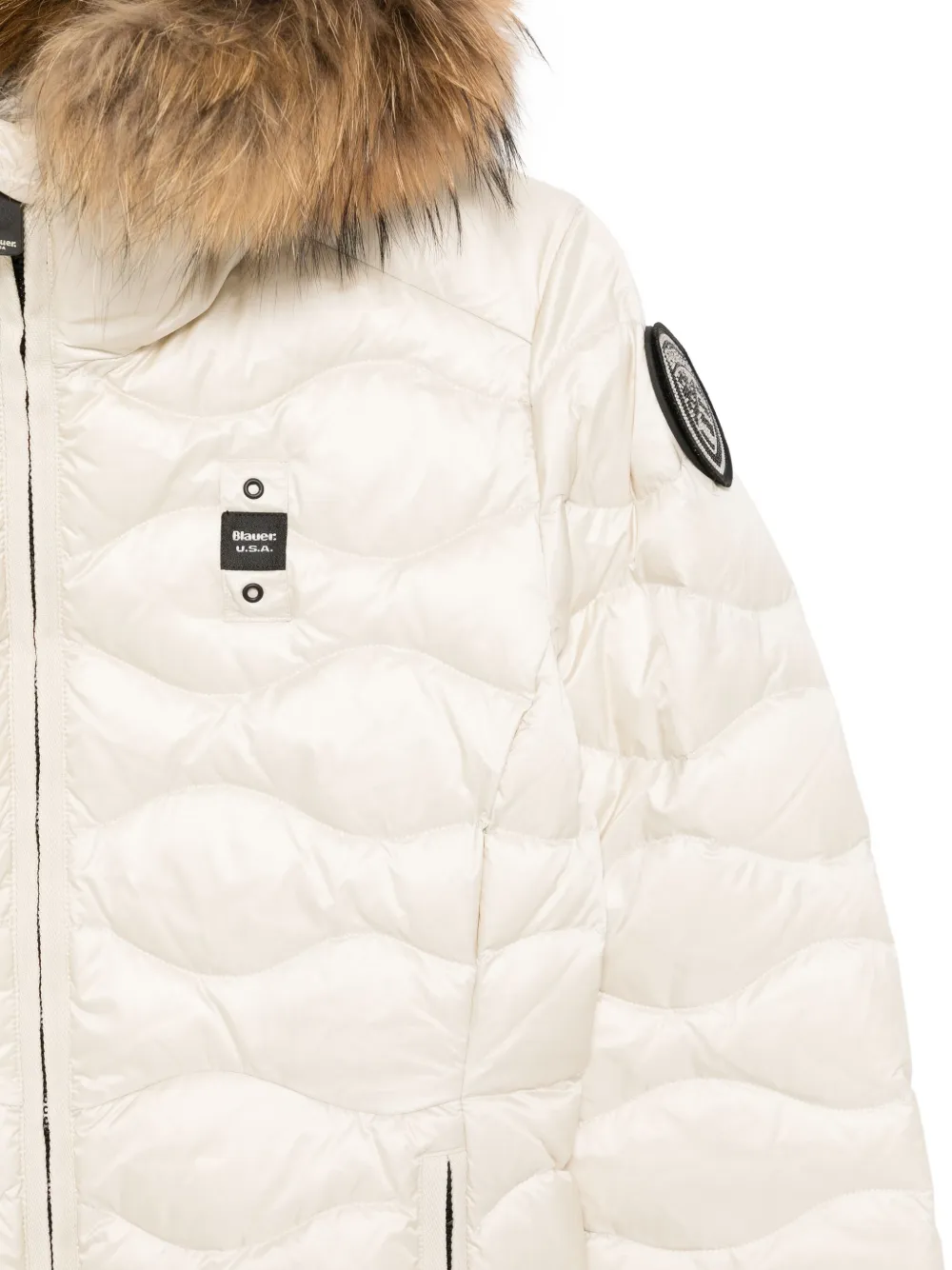 Пуховик с капюшоном и нашивкой с логотипом Blauer, белый 74 428₽
