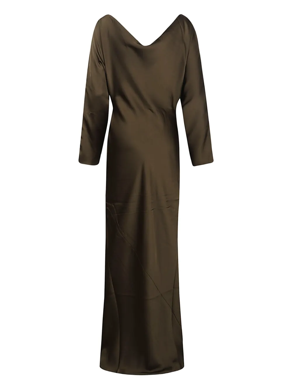 Зеленое макси-платье с длинными рукавами и вырезом лодочка
