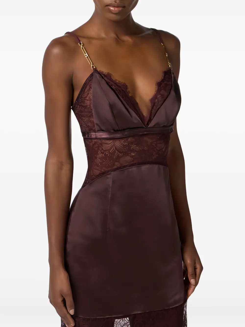 Бордовая сатиновая ткань, вставки из цветочного кружева, тонкие бретели