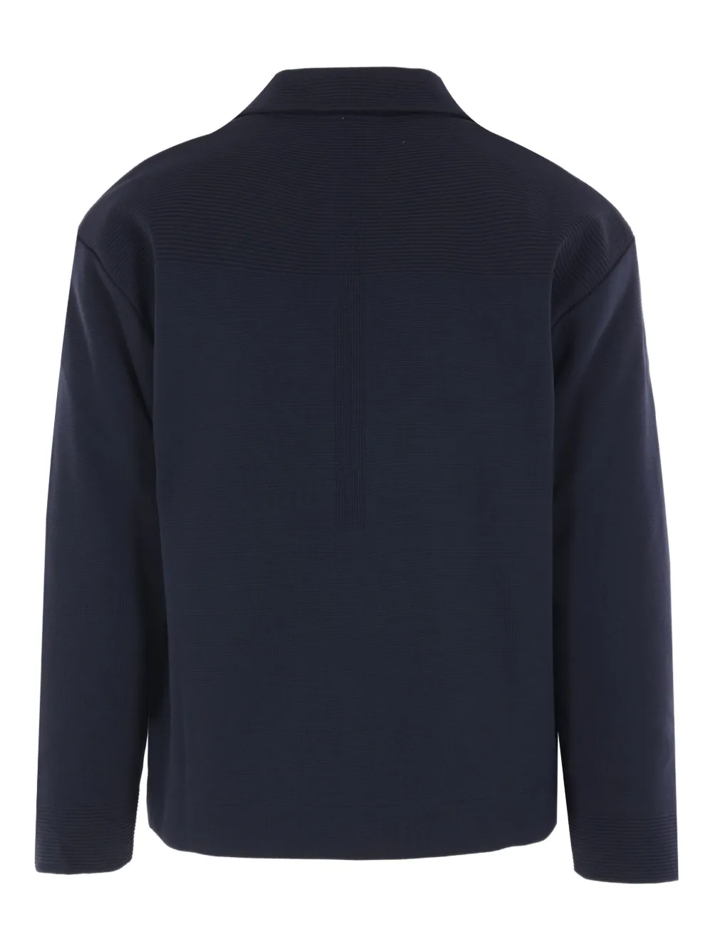 Синий цвет, рубчатые детали, застежка на пуговицы, воротник, длинные рукава