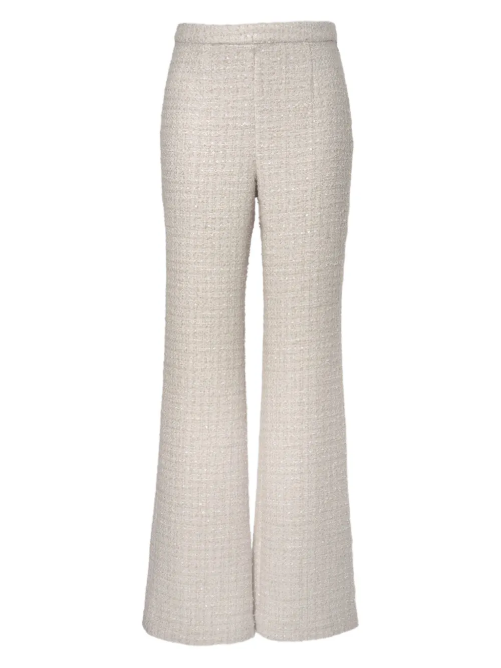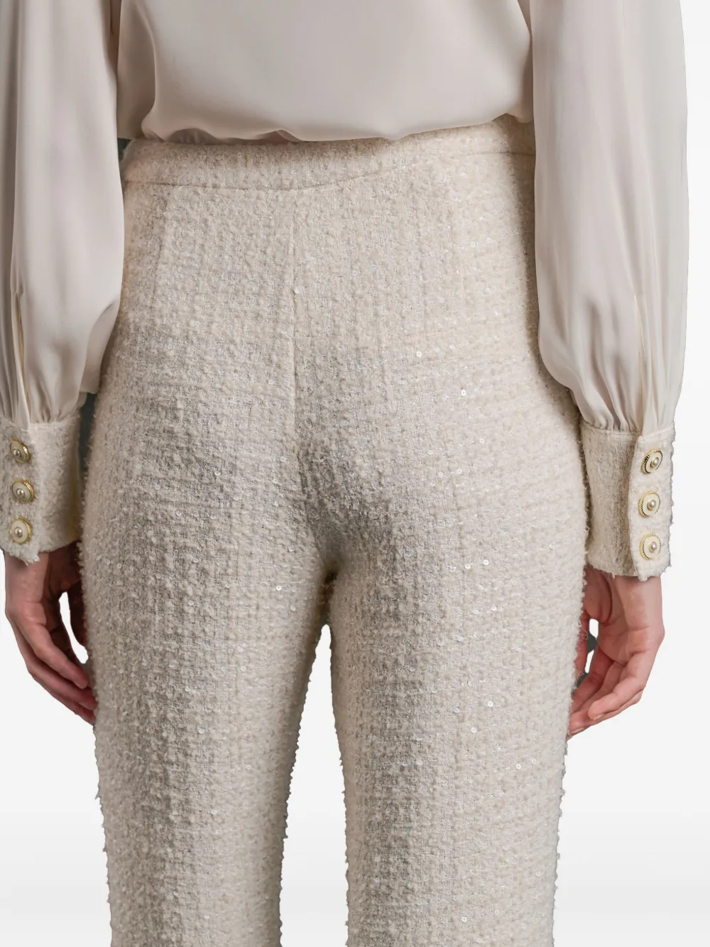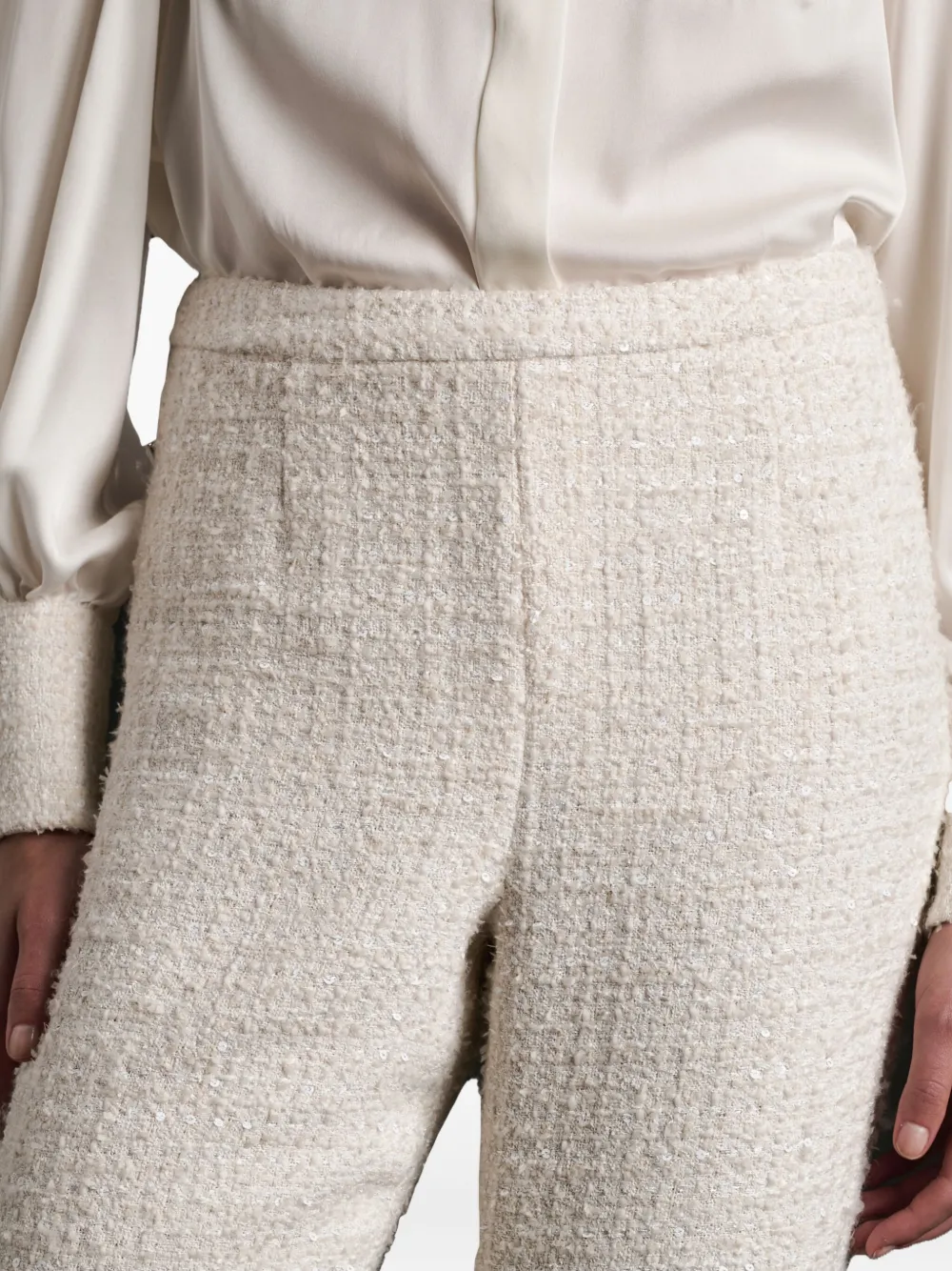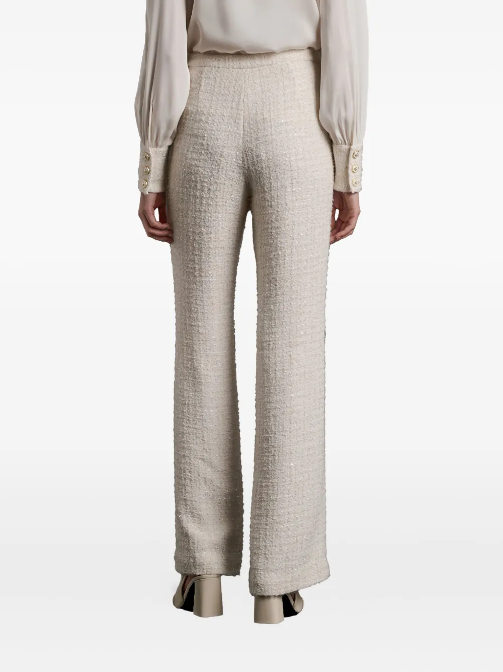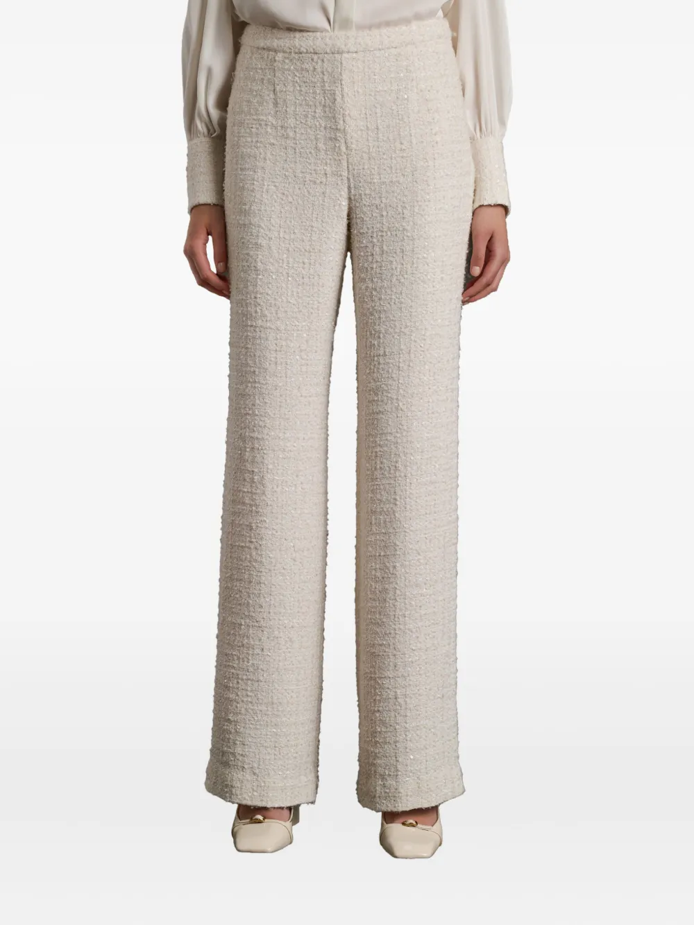 Белые брюки из твида, без карманов, с застежкой-молнией сбоку, широкий крой