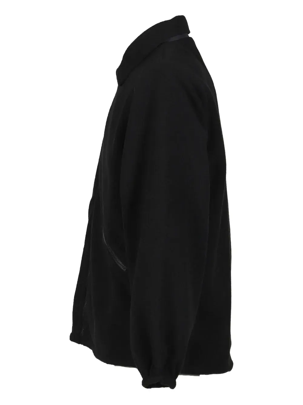 Черный цвет, застежка-молния спереди, передние карманы на молнии, отложной воротник, длинные рукава