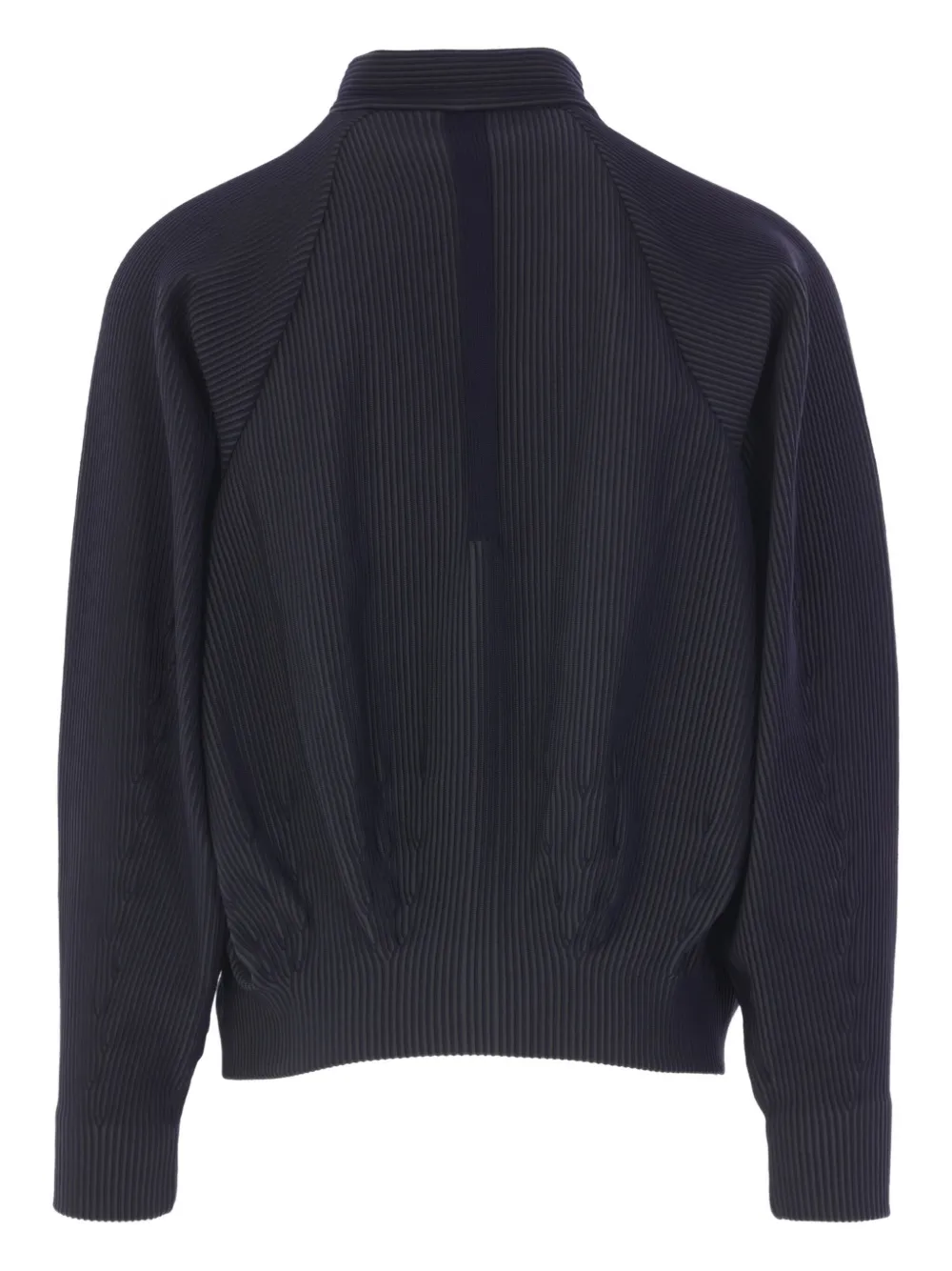 Черный вязаный трикотаж с ребристой фактурой, застежка на пуговицы, высокий воротник, длинные рукава
