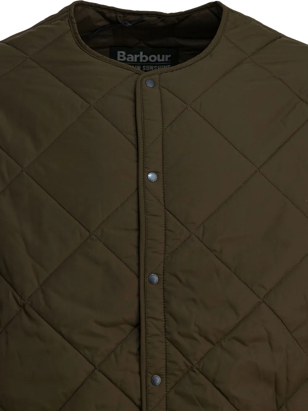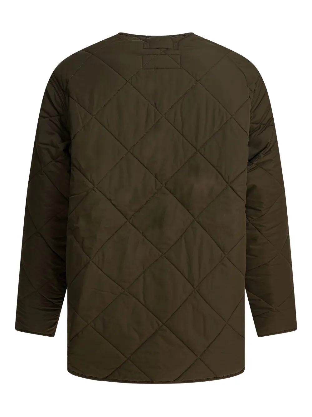 Оливковый стеганый жакет на пуговицах с круглым вырезом, накладным карманом спереди и длинными рукавами