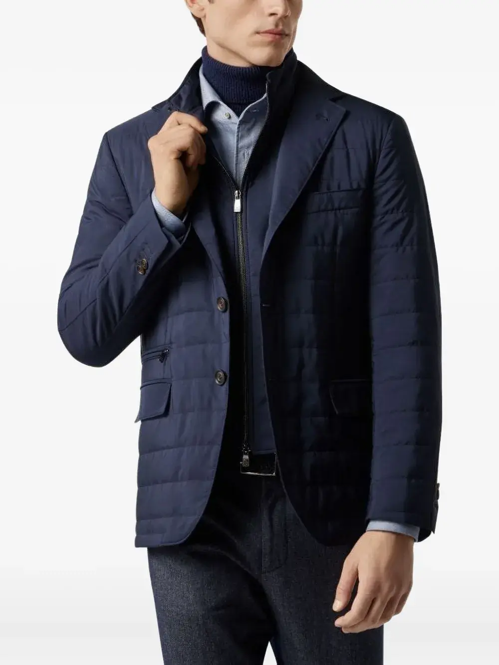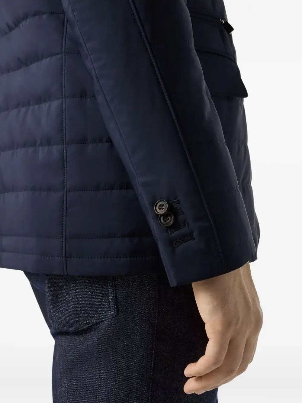 Синий стеганый, застежка на пуговицы, застежка-молния, накладные карманы с клапанами, манжеты на пуговицах