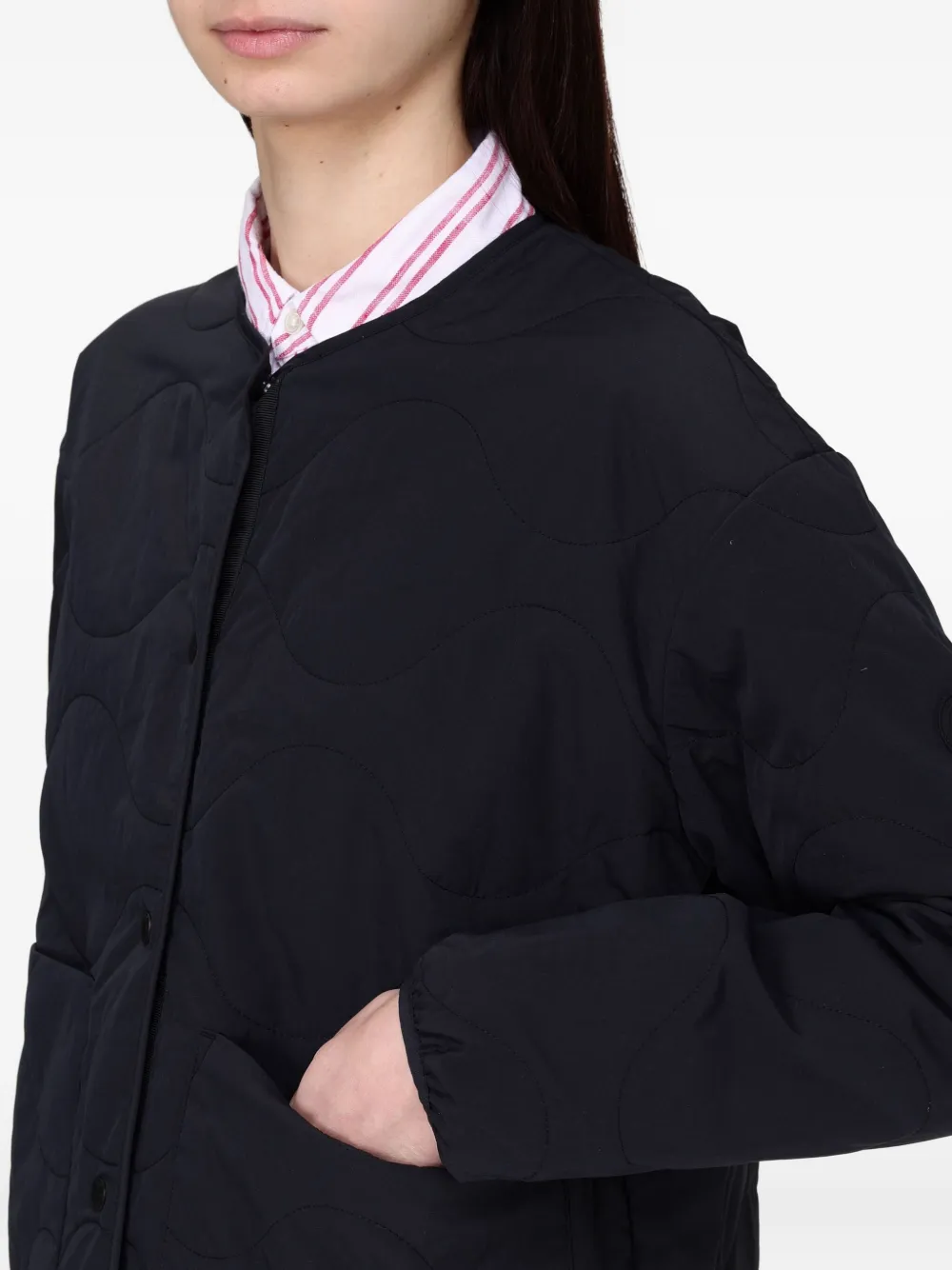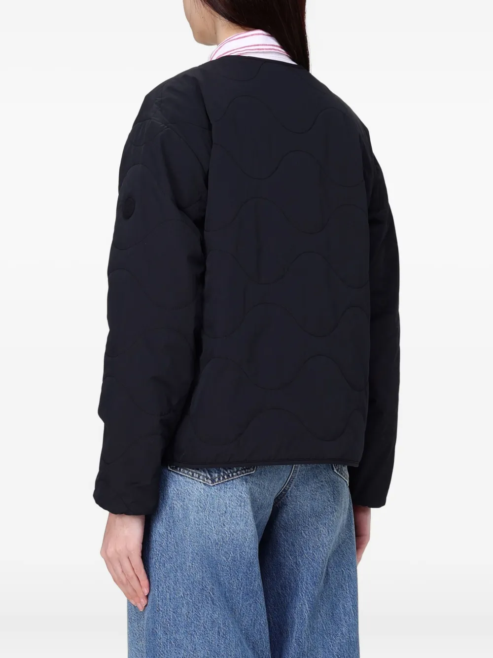 Синий стеганый дизайн, круглый вырез, застежка на пуговицы спереди, накладные карманы спереди, нашивка с логотипом на рукаве
