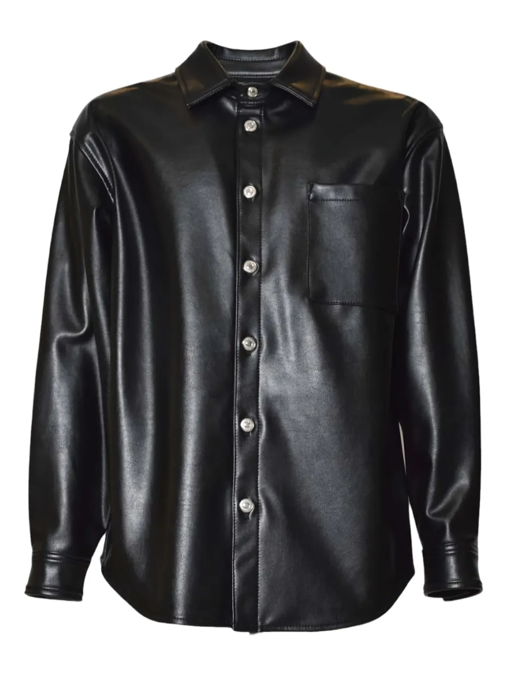 Черный цвет, нагрудный карман, застежка на пуговицы, длинные рукава, манжеты на пуговицах, классический воротник