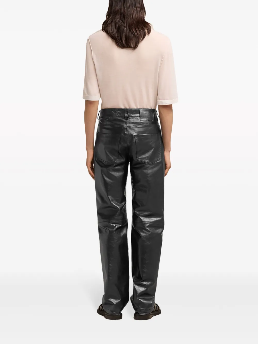 Кожаные брюки прямого кроя Ami Paris, черный