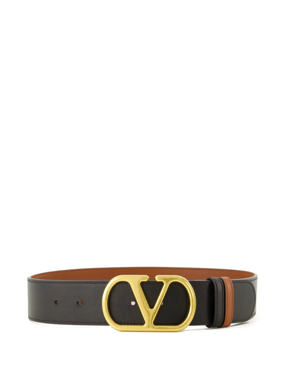 Коричневый и черный двусторонний ремень из телячьей кожи с пряжкой VLogo