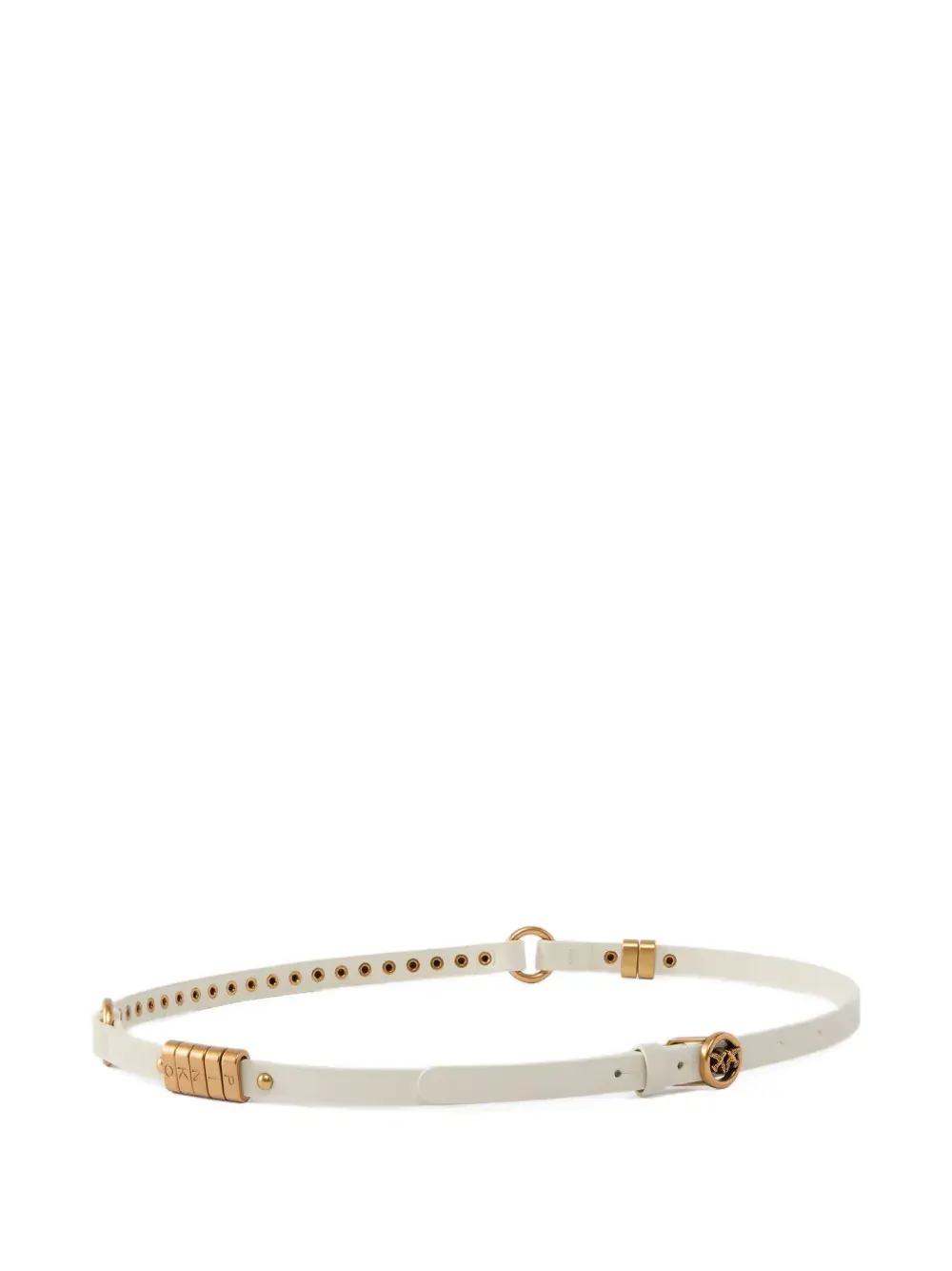 Белая пряжка с логотипом, отделка люверсами, фурнитура золотистого цвета, регулируемая длина, застежка на штырек