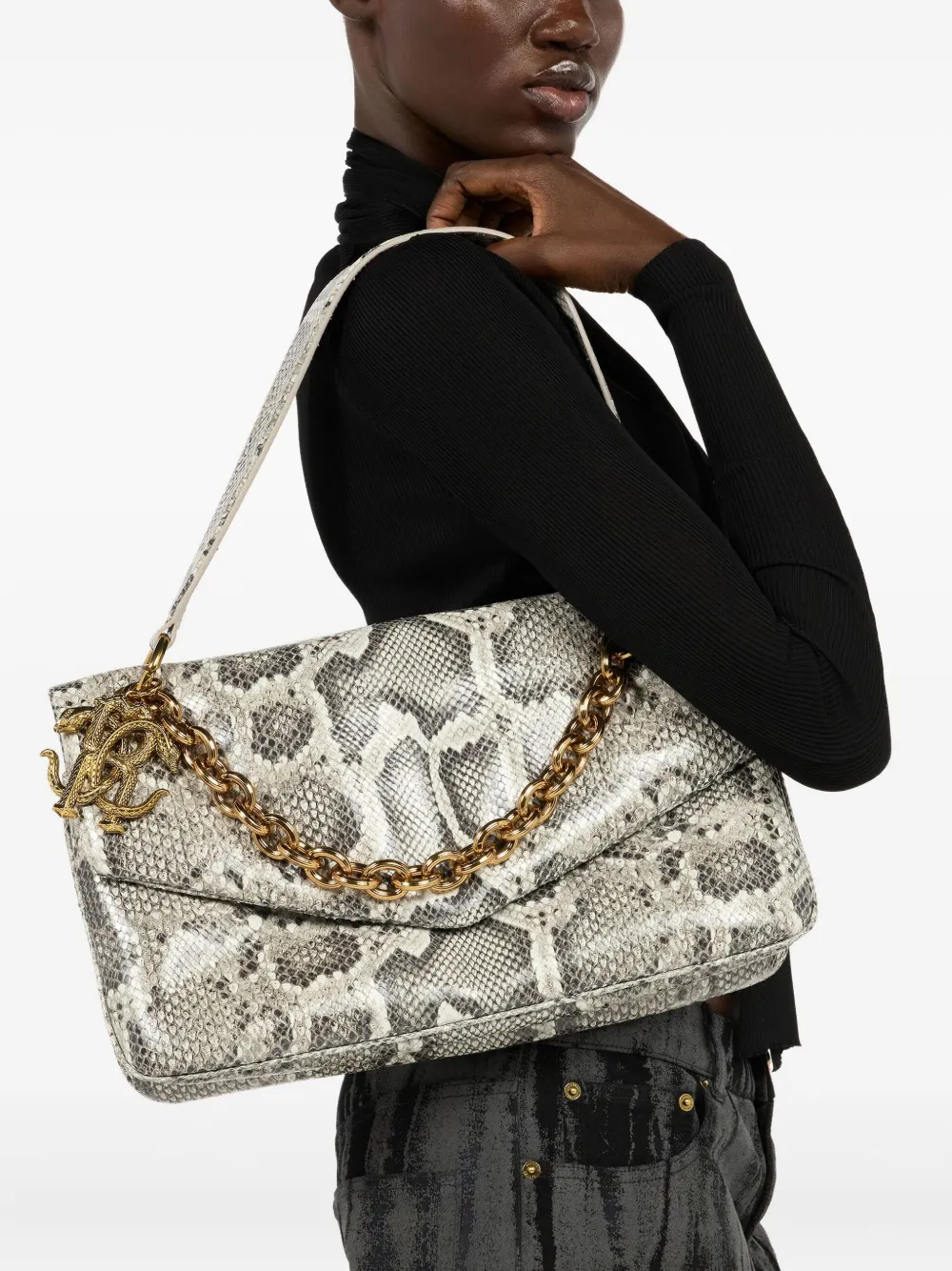 Сумка на плечо со змеиным принтом Roberto Cavalli, серый 189 469₽