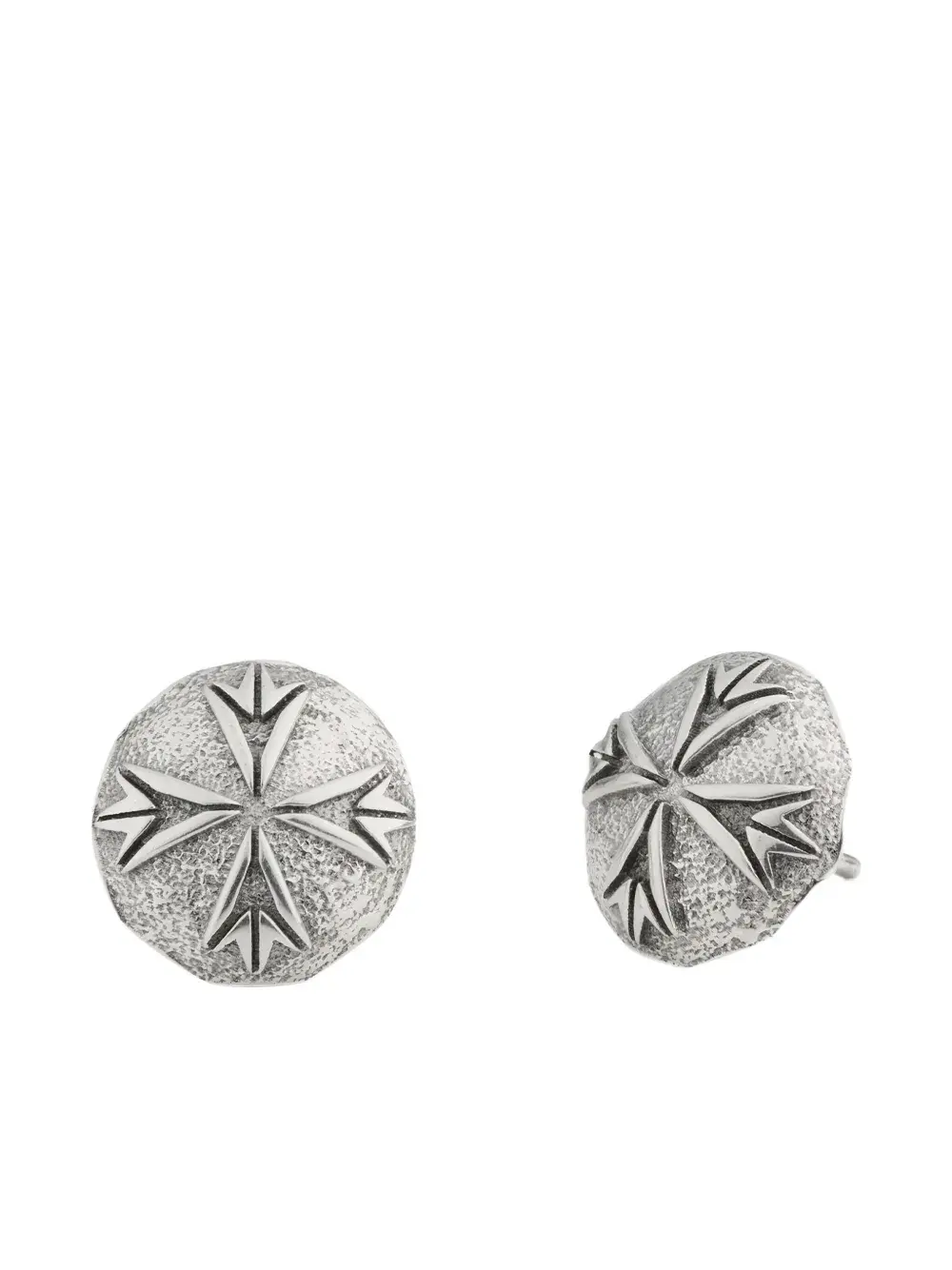 Серьги из серебра 925 пробы с матовой отделкой, с гравированным логотипом и дизайном в виде гвоздиков. Поставляются в паре.