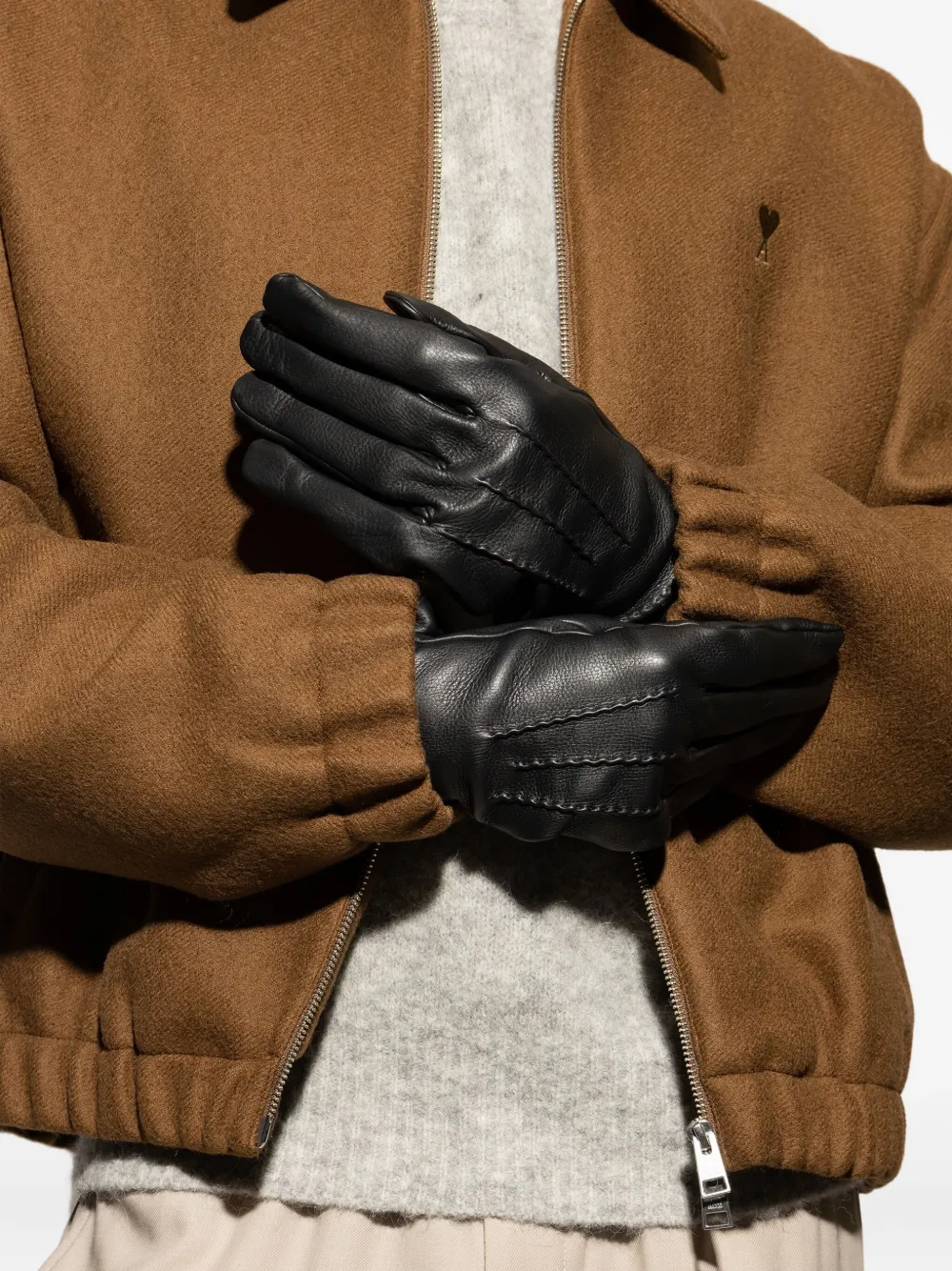 Кожаные перчатки с отделочной строчкой Burberry, черный