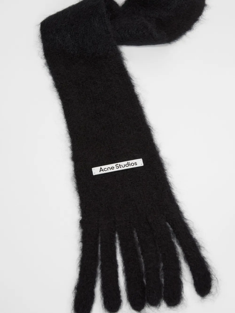 Шарф с бахромой и нашивкой-логотипом Acne Studios, черный