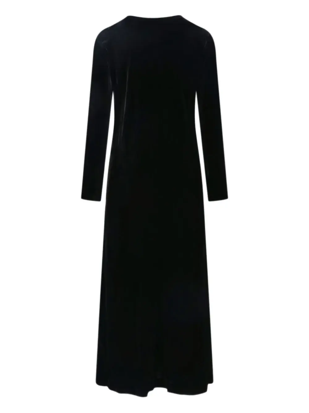 Черная бархатная фактура, круглый вырез, длинные рукава, длина миди