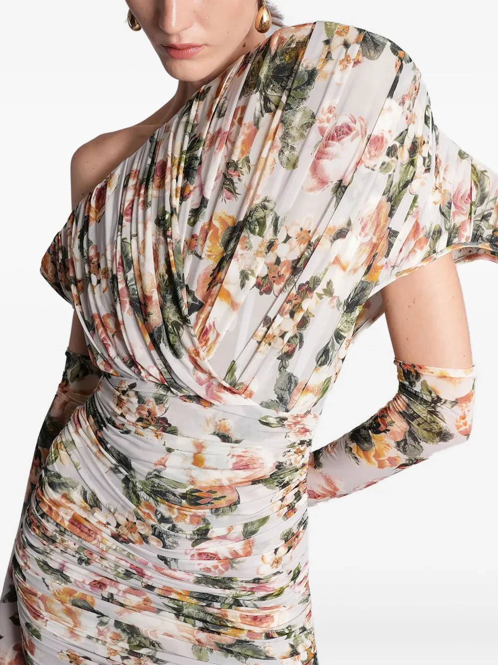 Мини-платье с цветочным принтом и драпировкой Magda Butrym, нейтральный 216 542₽