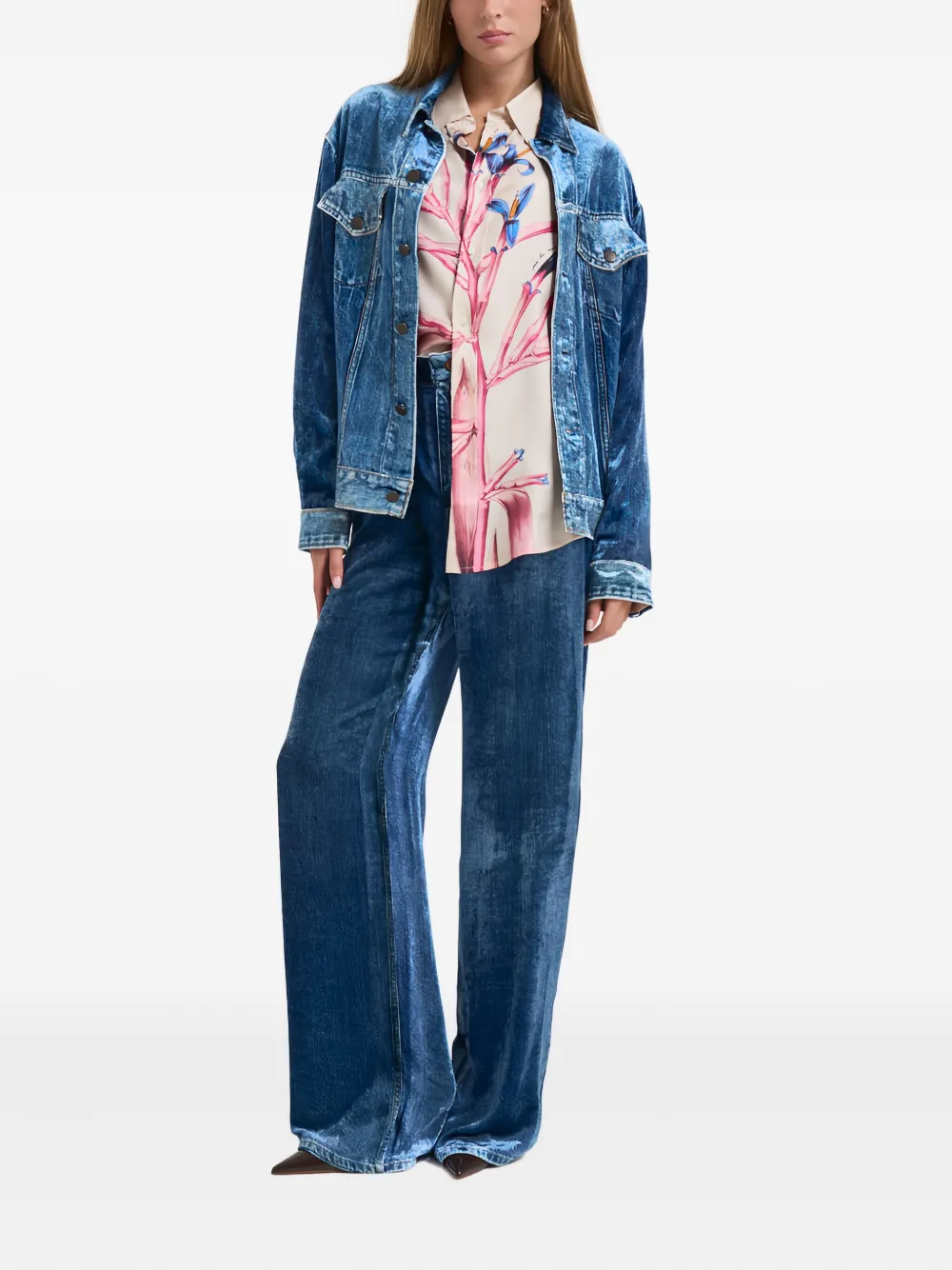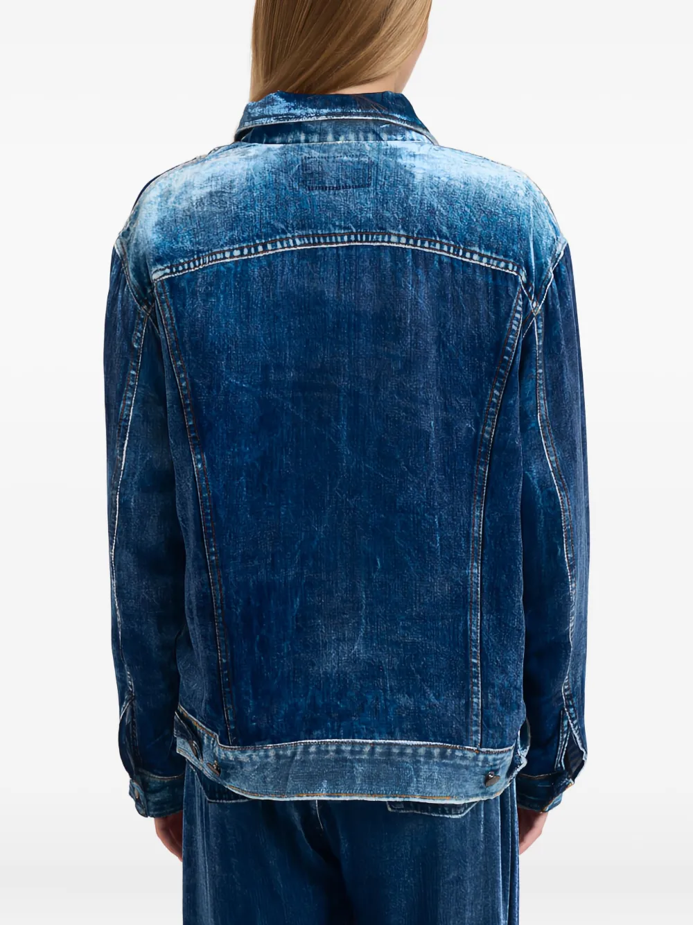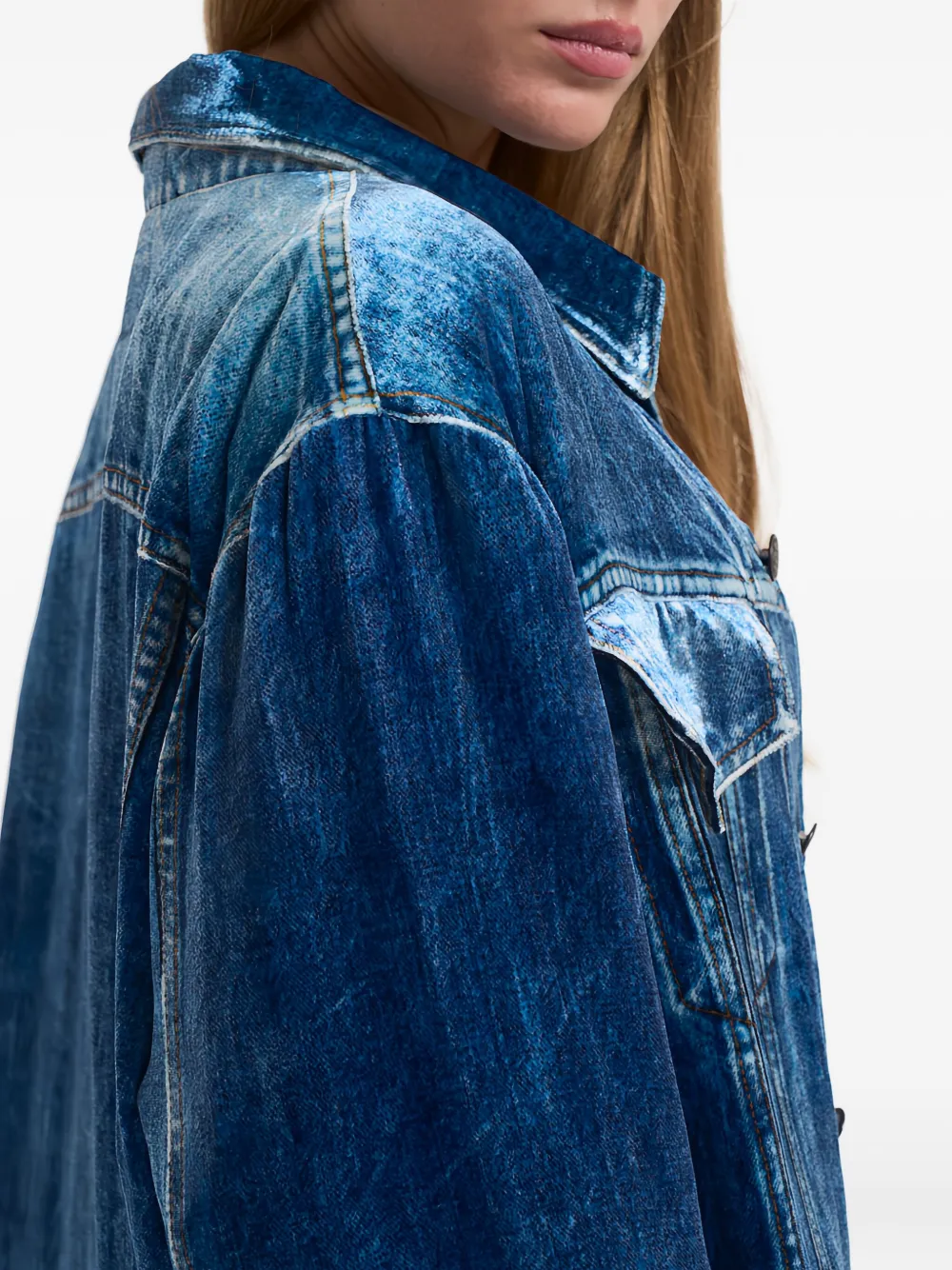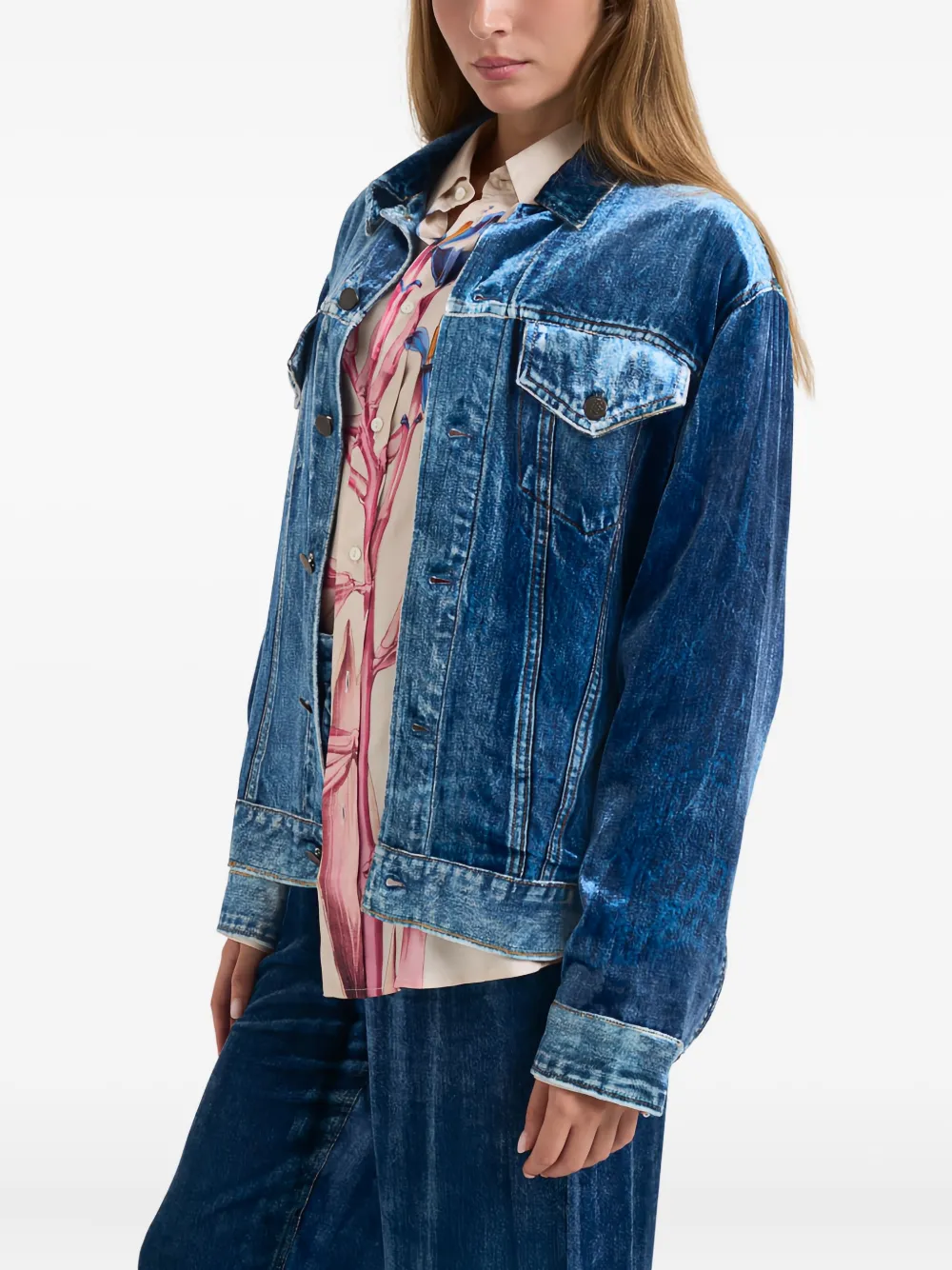 Синий, застежка на пуговицы, передние карманы, длинные рукава, воротник