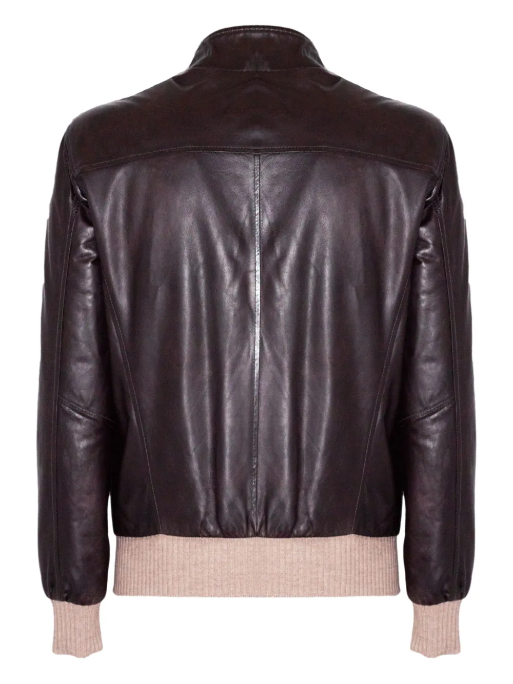 Коричневый стеганый, застежка-молния, рубчатый низ, рубчатые манжеты, стойка-воротник