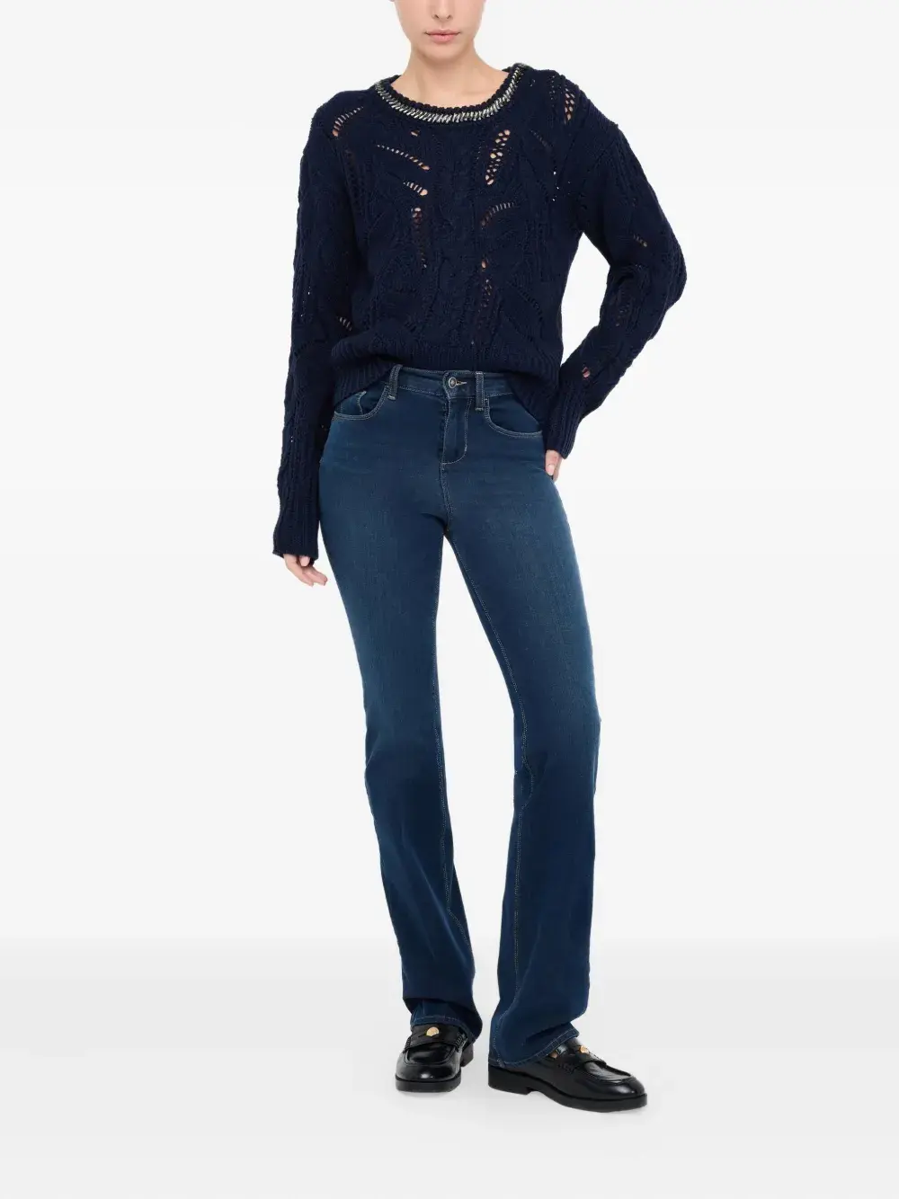Ажурный джемпер с драгоценными камнями Liu Jo, синий