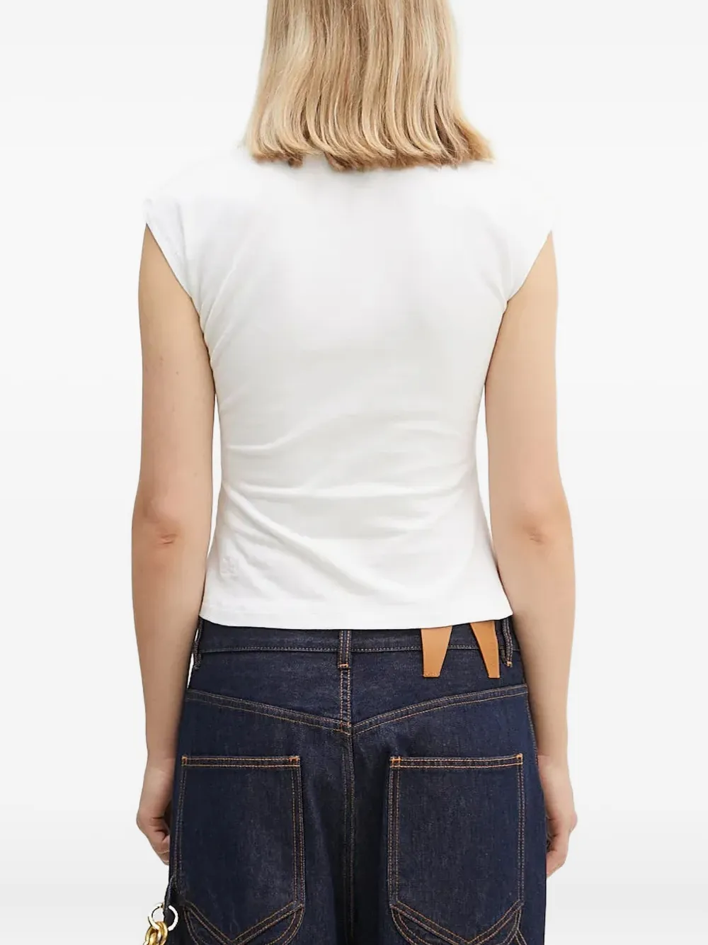 Белый с логотипом, круглый вырез, короткие рукава, прямой подол