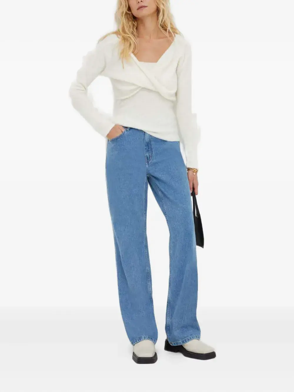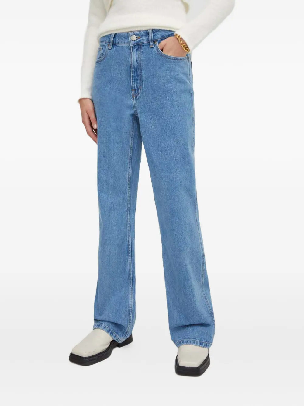 Светло-голубые шлевки, классические пять карманов, отделка швами