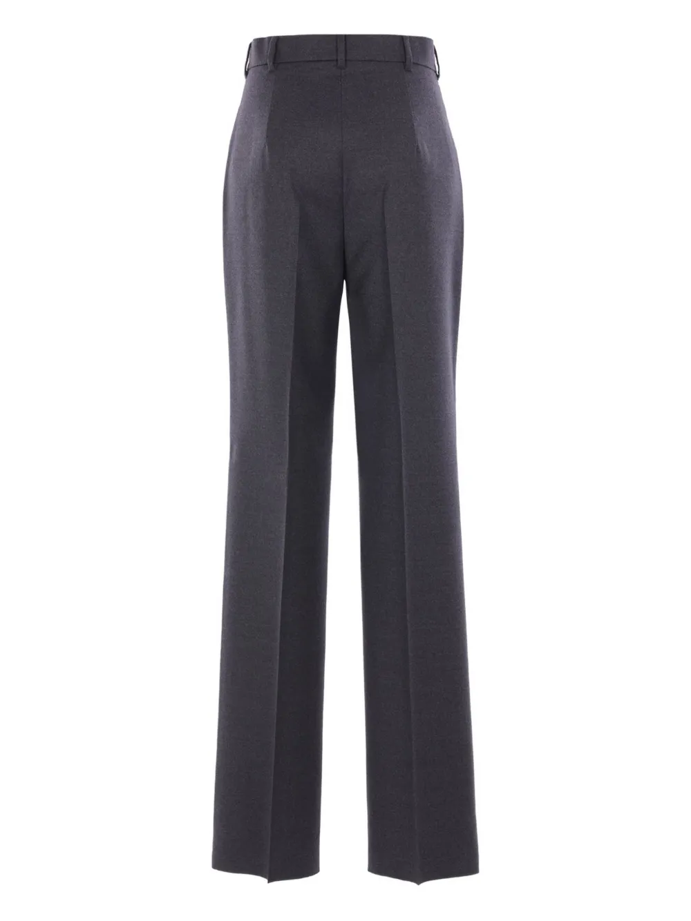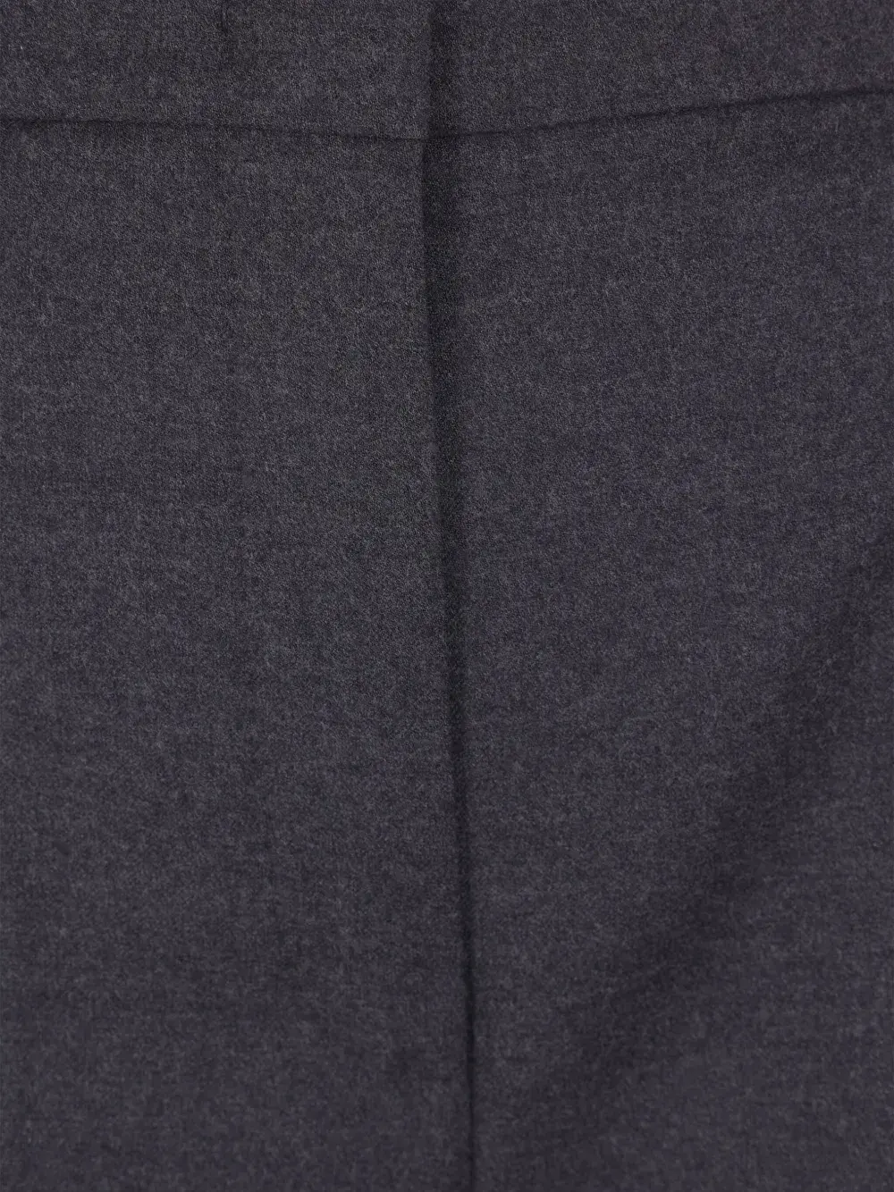 Серые шлевки, передние складки, скрытая застежка, прямые брючины