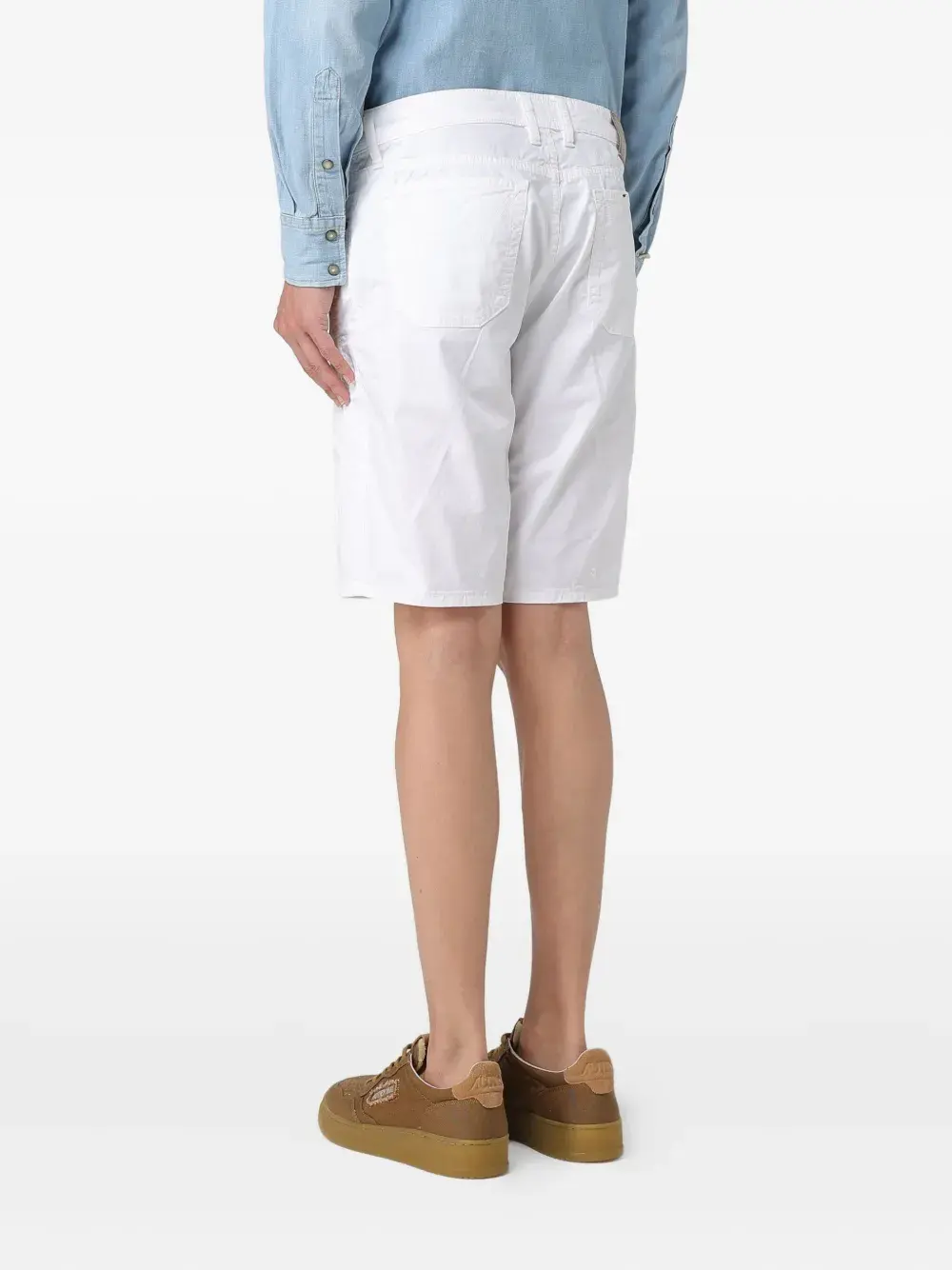 Белый, шлевки для ремня, задние накладные карманы, застежка на пуговицу
