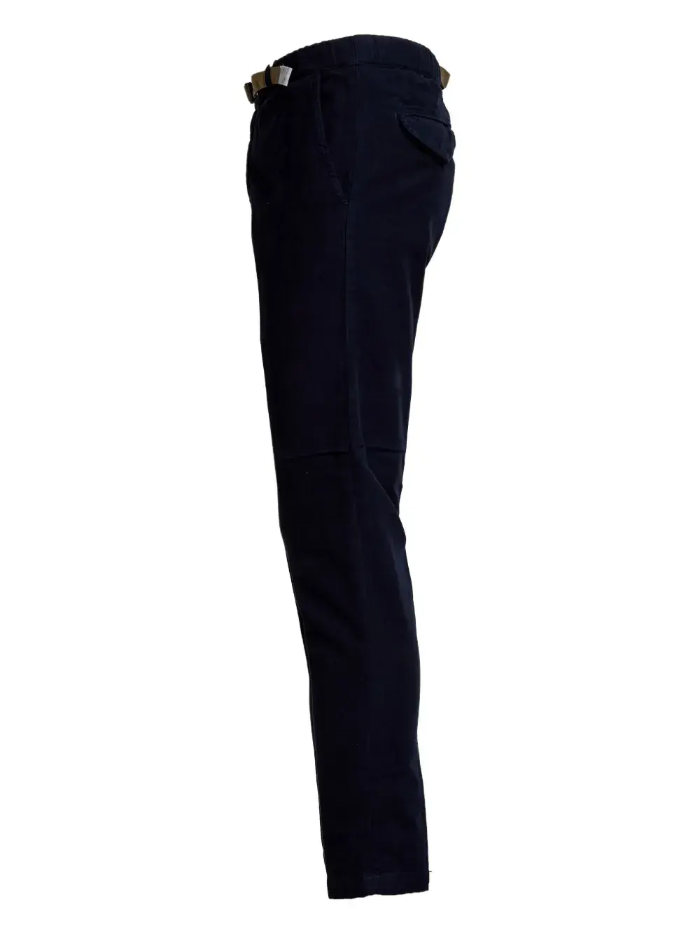 Темно-синие брюки с эластичным поясом, задним карманом и эффектом стирки