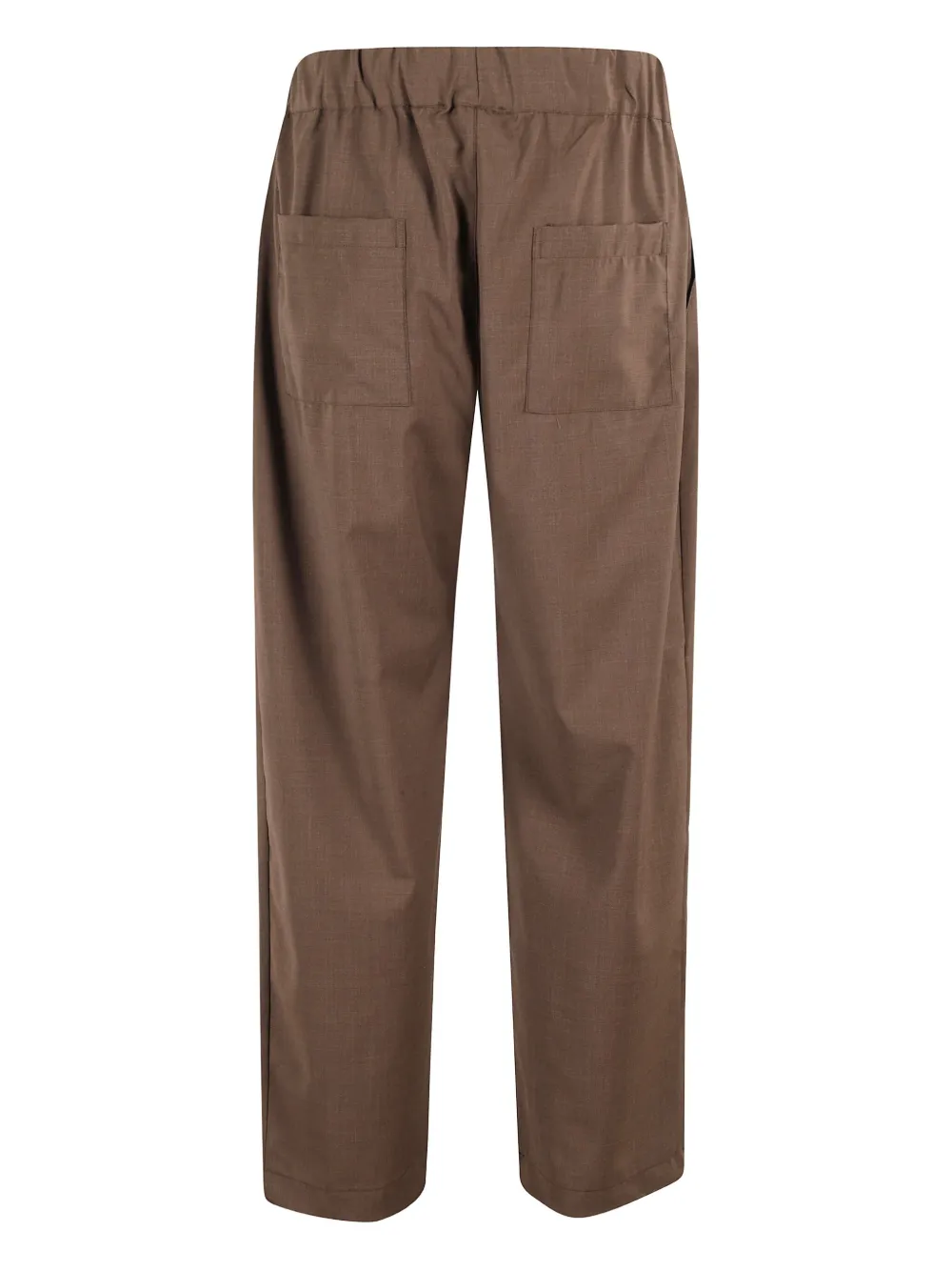 Коричневый цвет, эластичный пояс, два накладных задних кармана, складки спереди