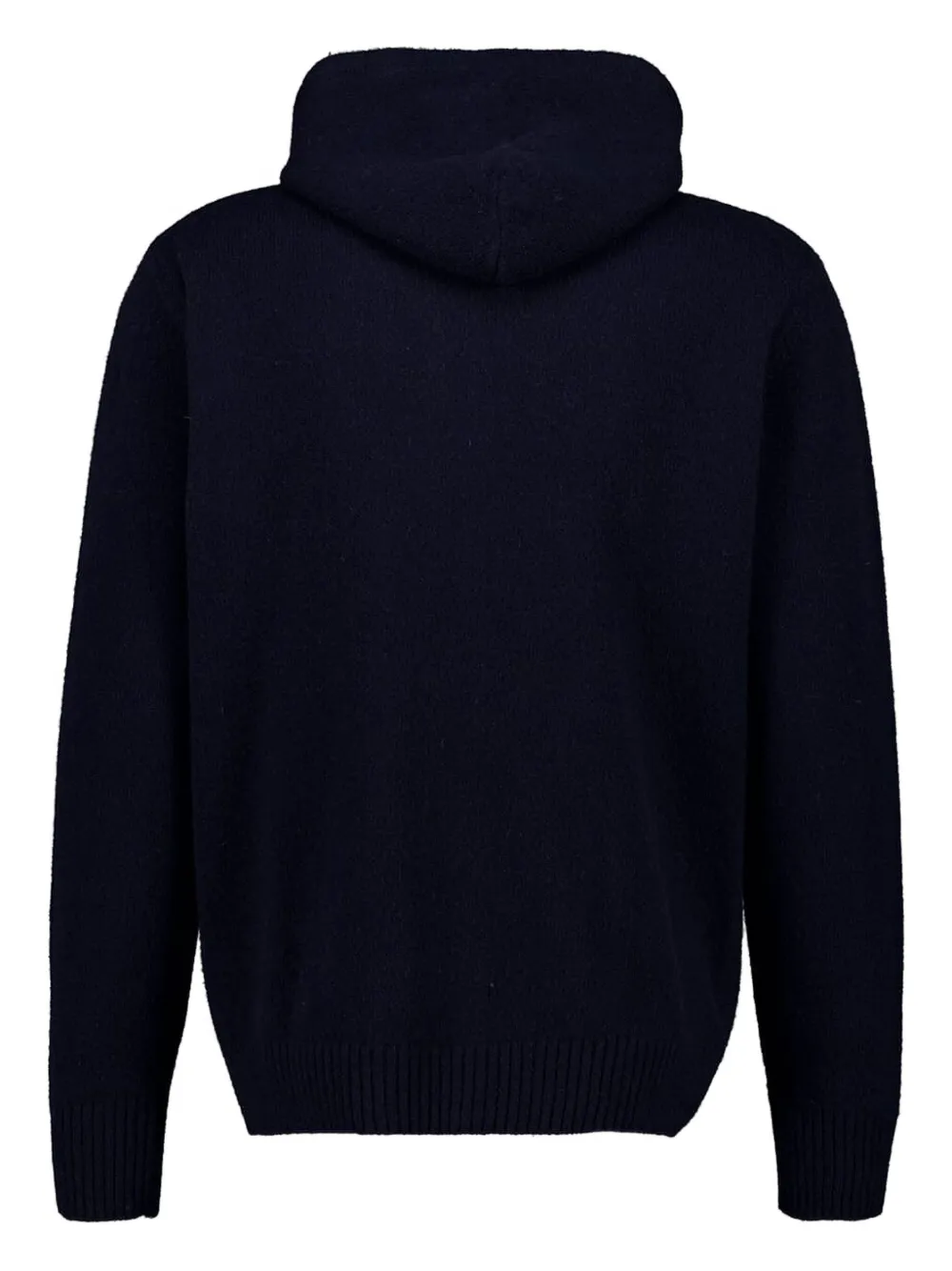 Темно-синий трикотажный изделие на молнии, длинные рукава, капюшон, ребристый подол
