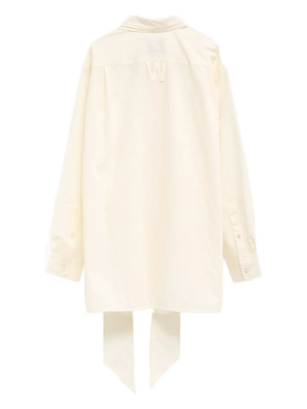 Рубашка цвета экрю с завязкой, застежкой на пуговицы, длинными рукавами и манжетами на пуговицах