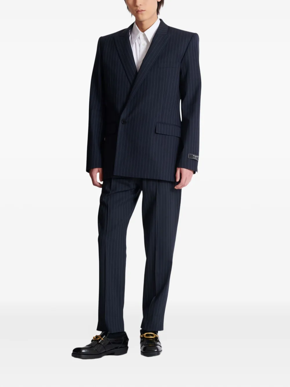 Двубортный пиджак в тонкую полоску Balmain, синий